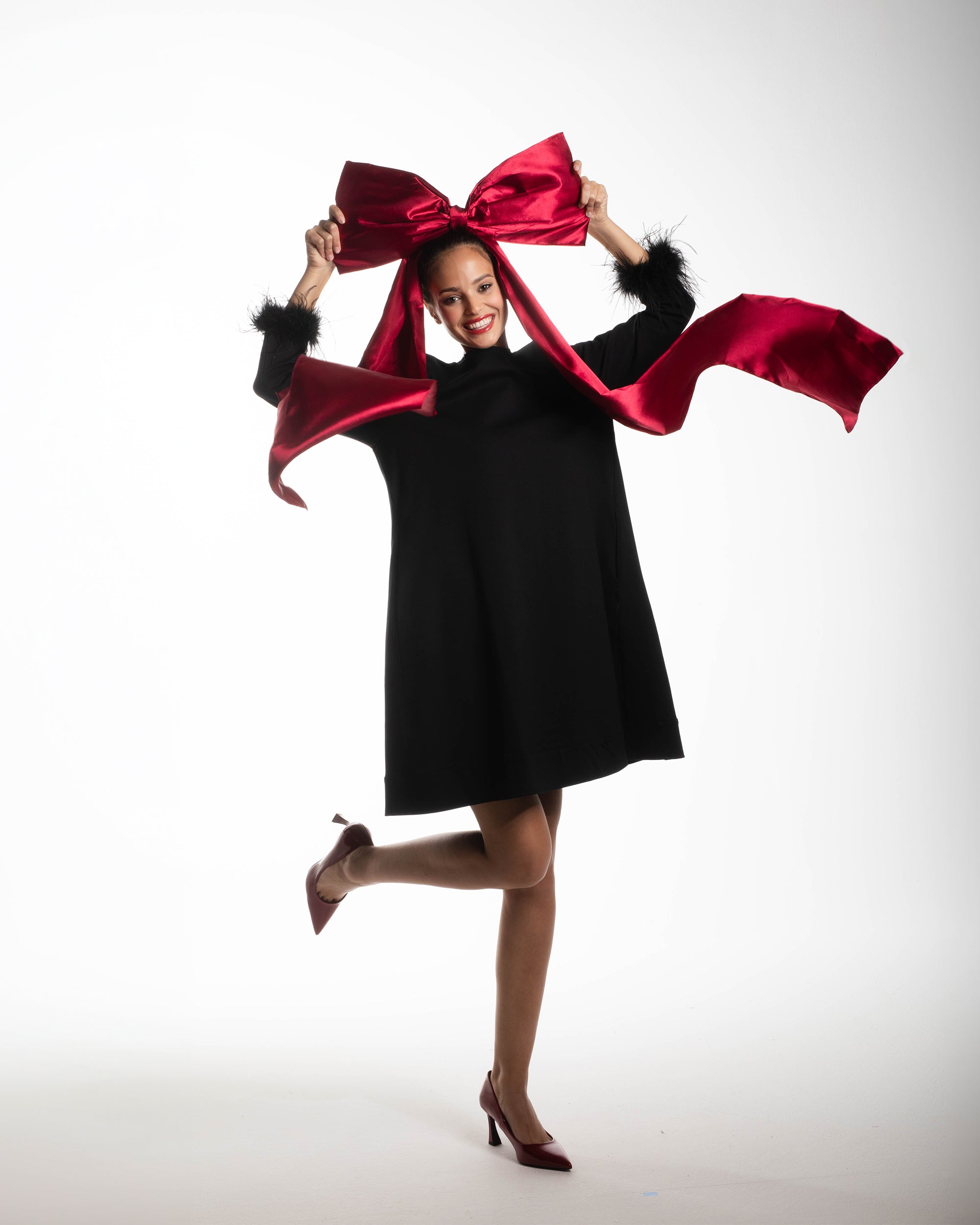 Abito midi, un capo dal fascino minimal ma ricco di personalità; la semplicità della linea è bilanciata dal dettaglio piumato che dona movimento e allure glamour per un look contemporaneo e raffinato.