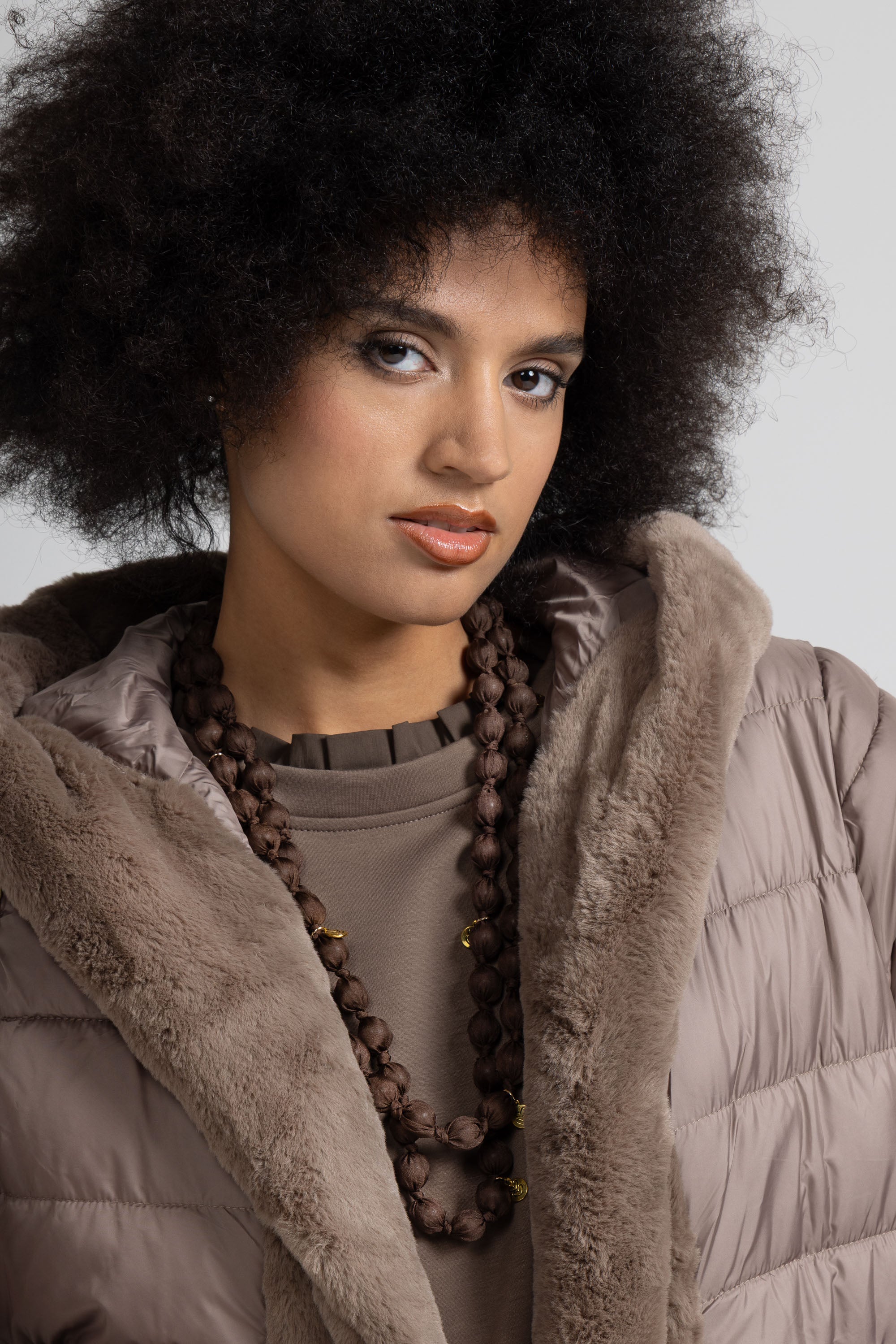 PIUMINO CON COLLO IN ECO PELLICCIA