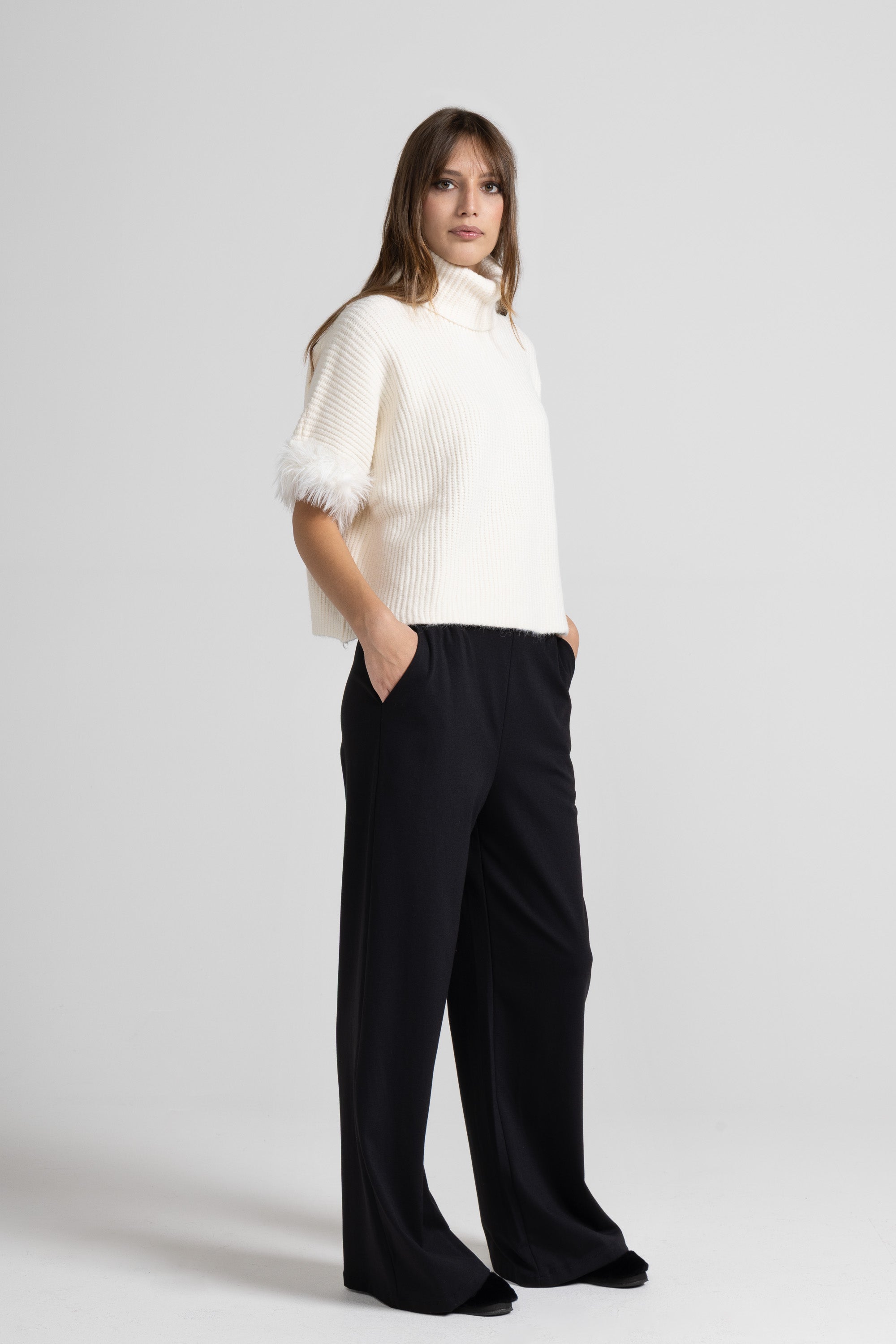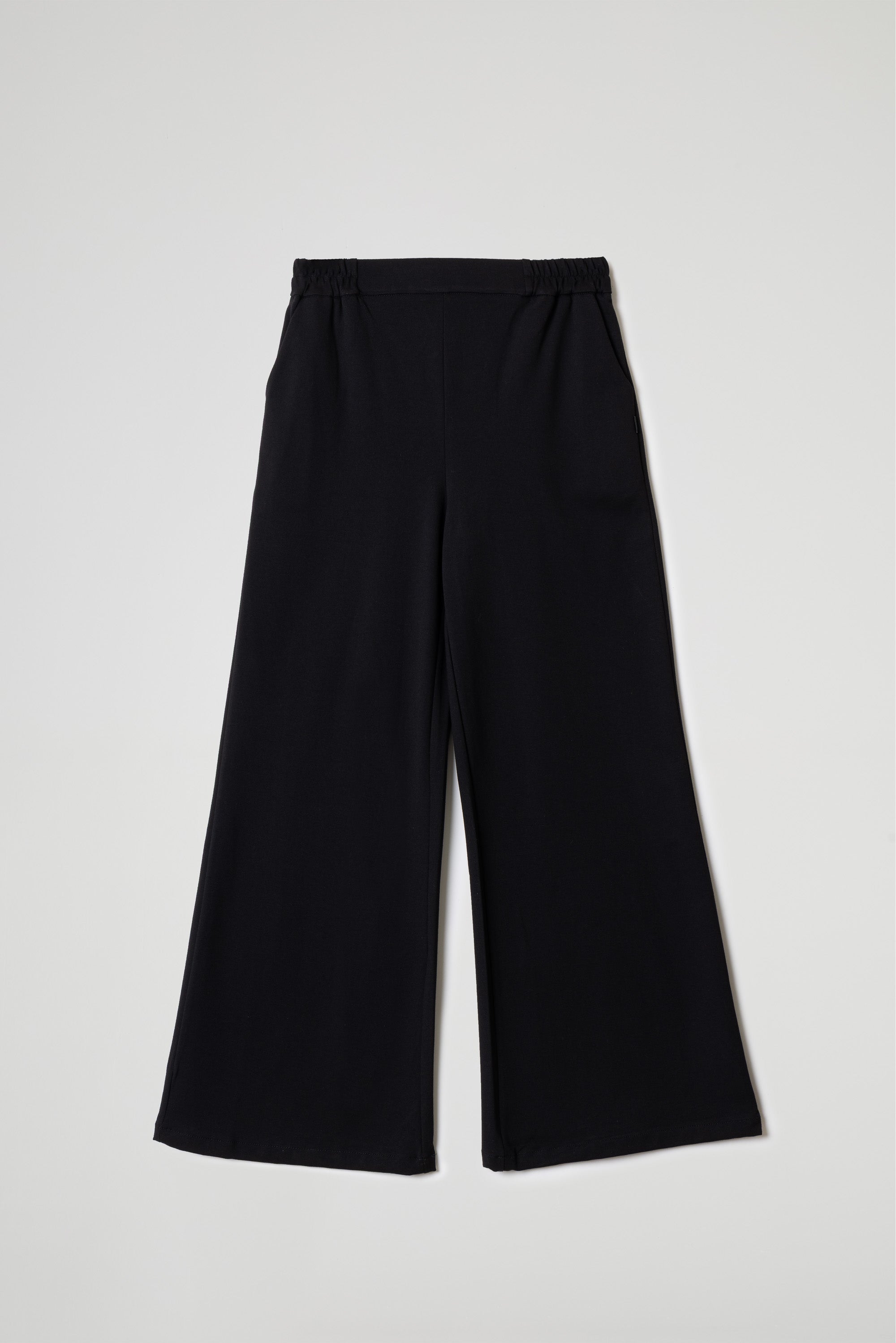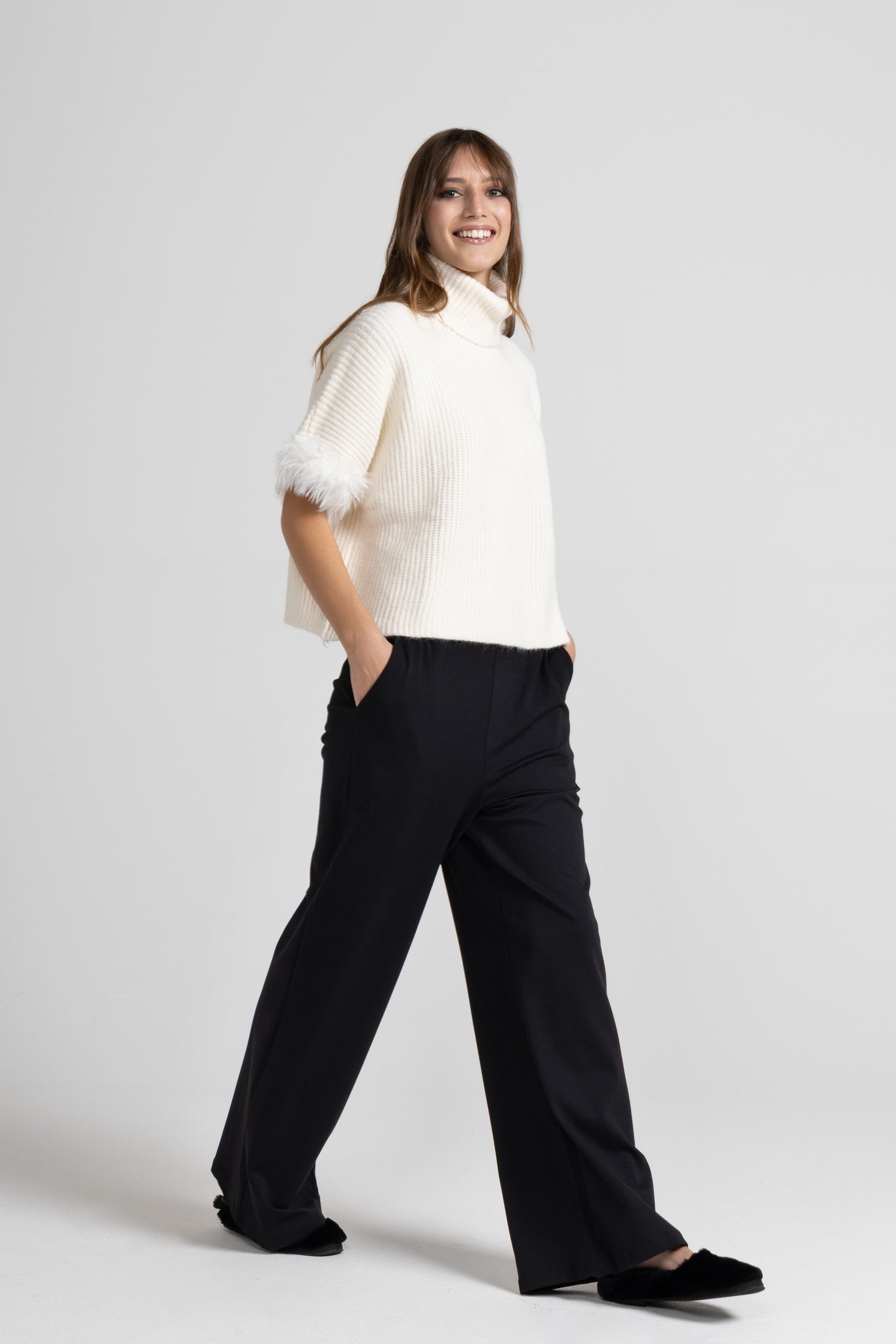 Pantalone a palazzo in tessuto punto Milano di viscosa, , elasticizzato morbido e piacevole al tatto, elastico in vita per un comfort ottimale, tasche all' americana. Lina morbida