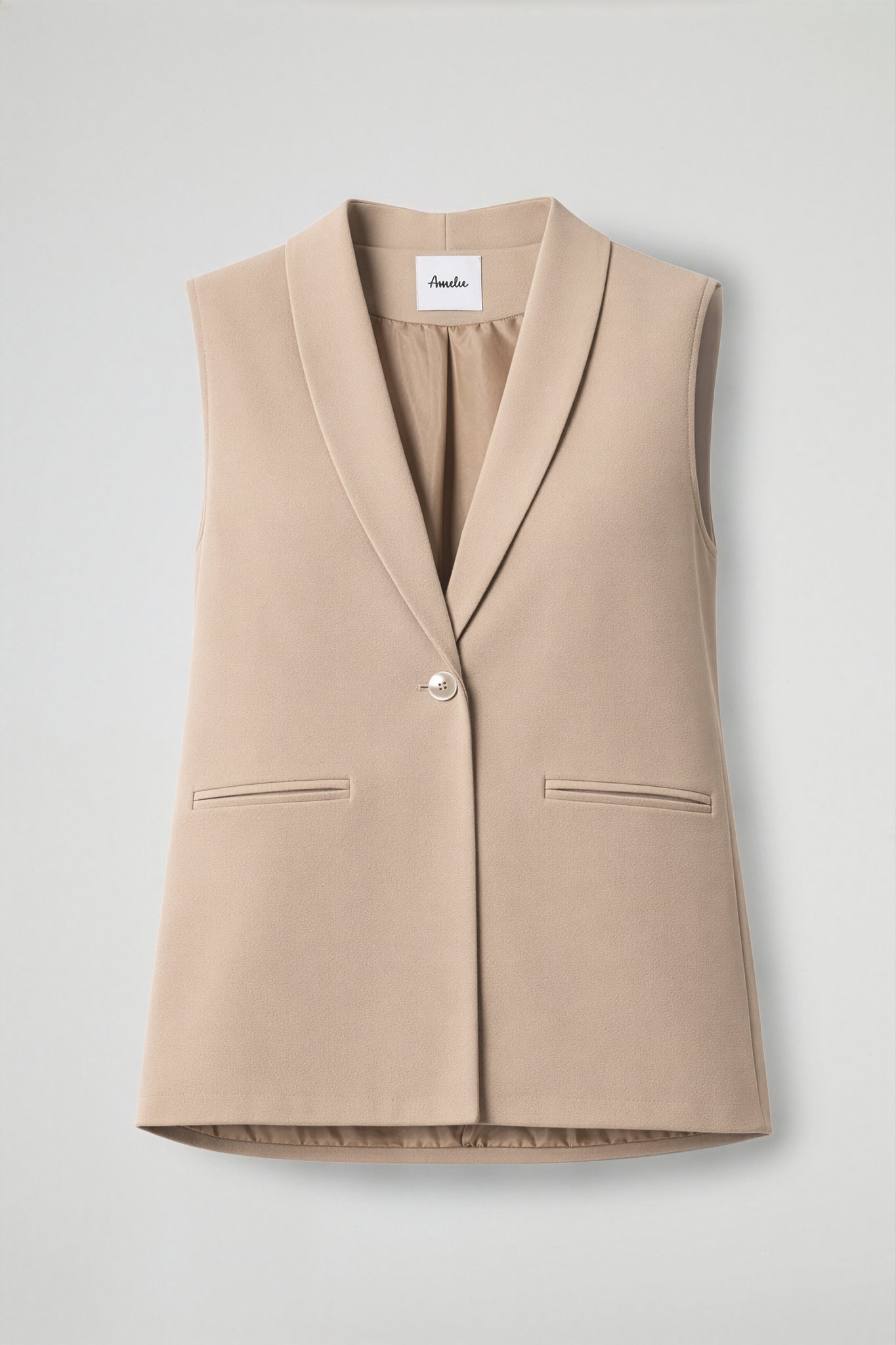 Gilet sartoriale realizzato in tessuto fluido; Un capo iconico dal fascino contemporaneo caratterizzato da una linea pulita e femminile, perfetto da indossare su camicie, bluse o maglie leggere, è il capo ideale per creare outfit eleganti, minimal e di tendenza sia per il giorno che per la sera.
