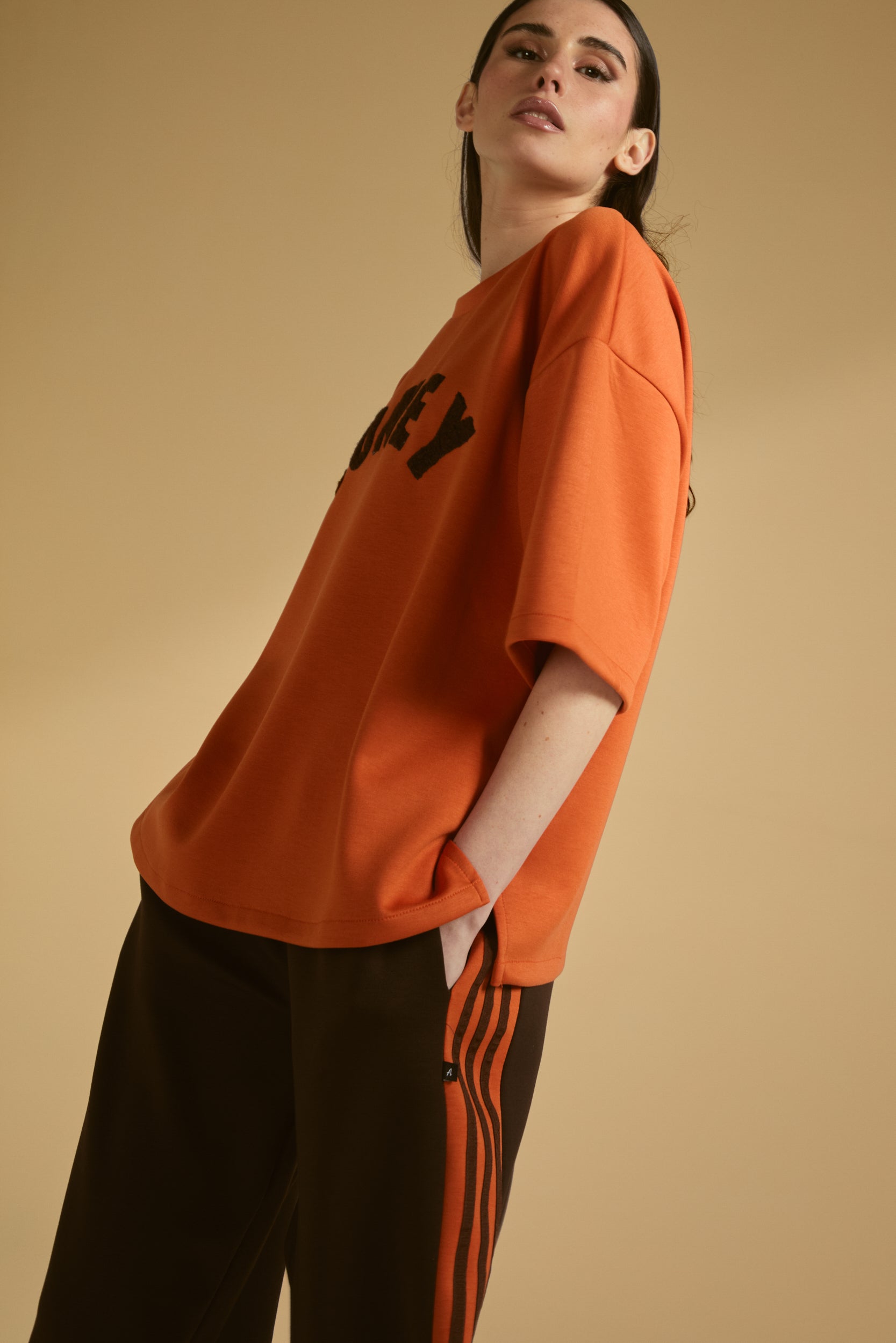 TOP MANICHE CORTE SCRITTA A CONTRASTO