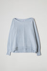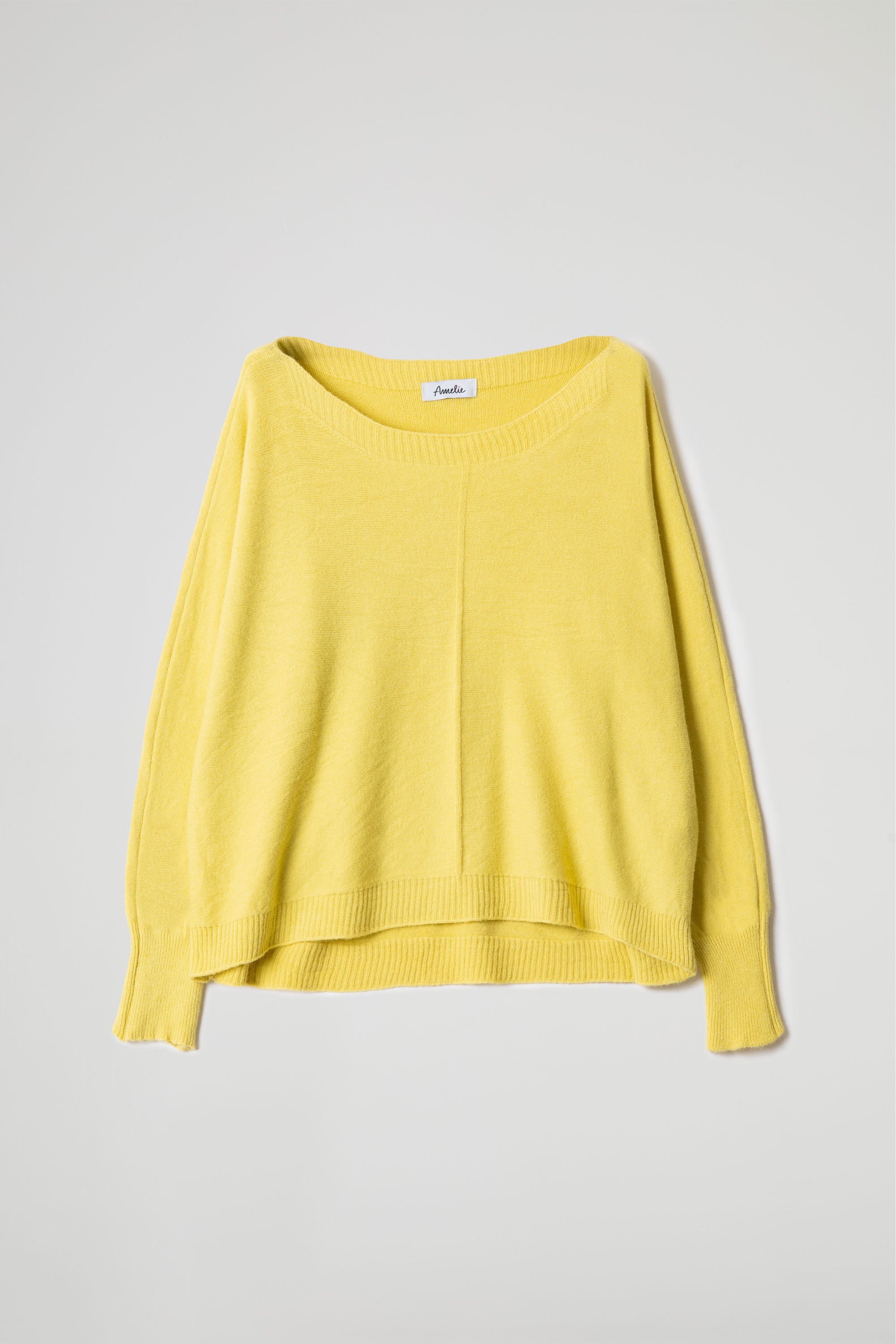 Maglia realizzata in morbida maglina di viscosa, girocollo ampio con lavorazione a coste che ne valorizza la struttura, spalle scesa, maniche lunghe con polsini a costine elasticizzate, dettaglio cucitura centrale , finitura a coste leggermente più ampia con retro lievemente più lungo, per una caduta fluida e armoniosa.