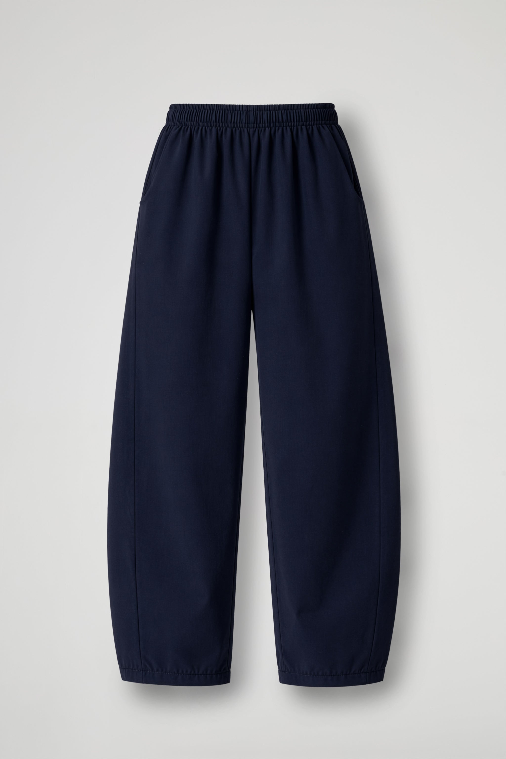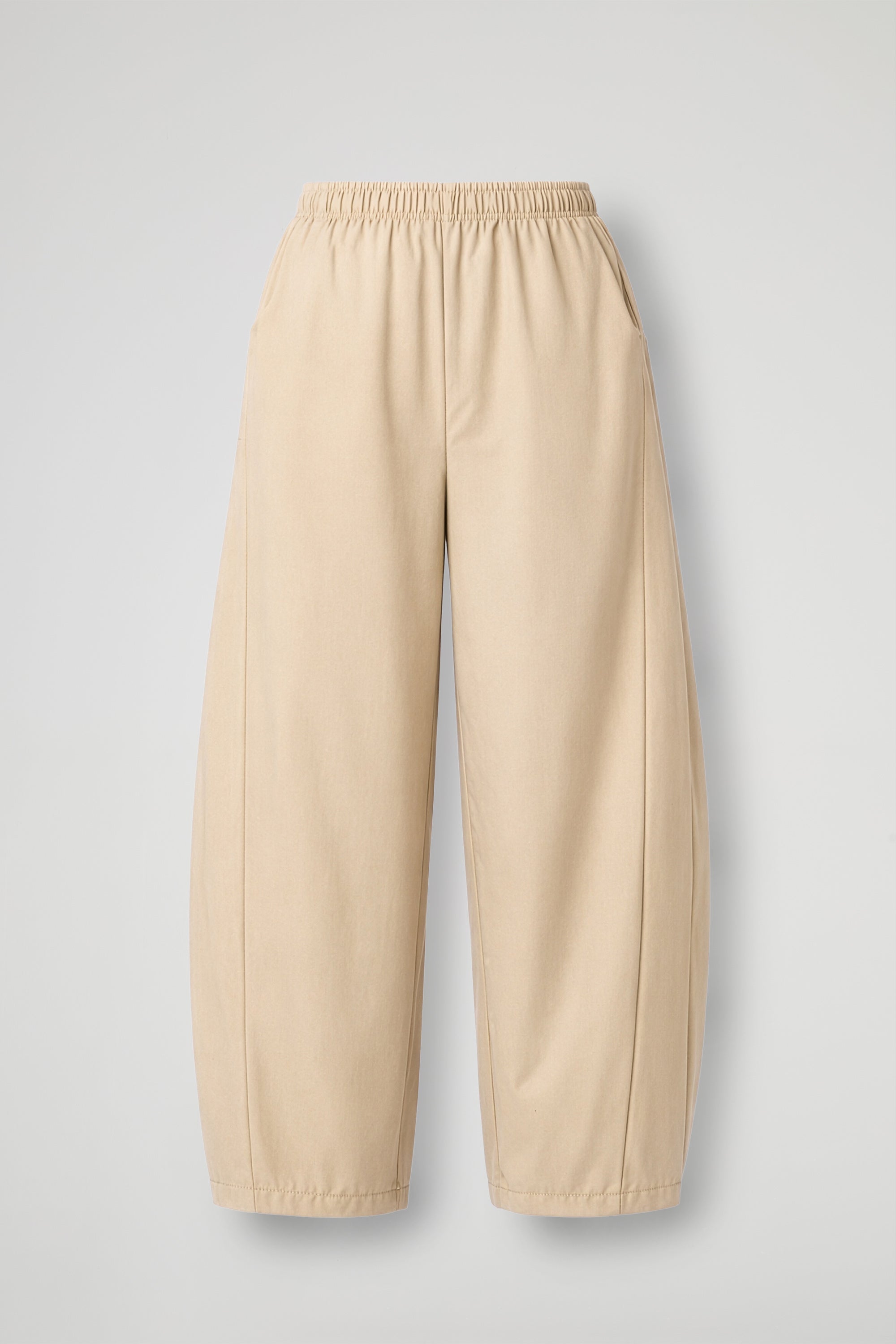 Pantalone in morbido tessuto di viscosa, fascia elastica in vita, tasche all'americana, inserto a triangolo laterale verticale, gamba ampia con leggera restrizione sul fondo, orlo pulito. Linea ampia