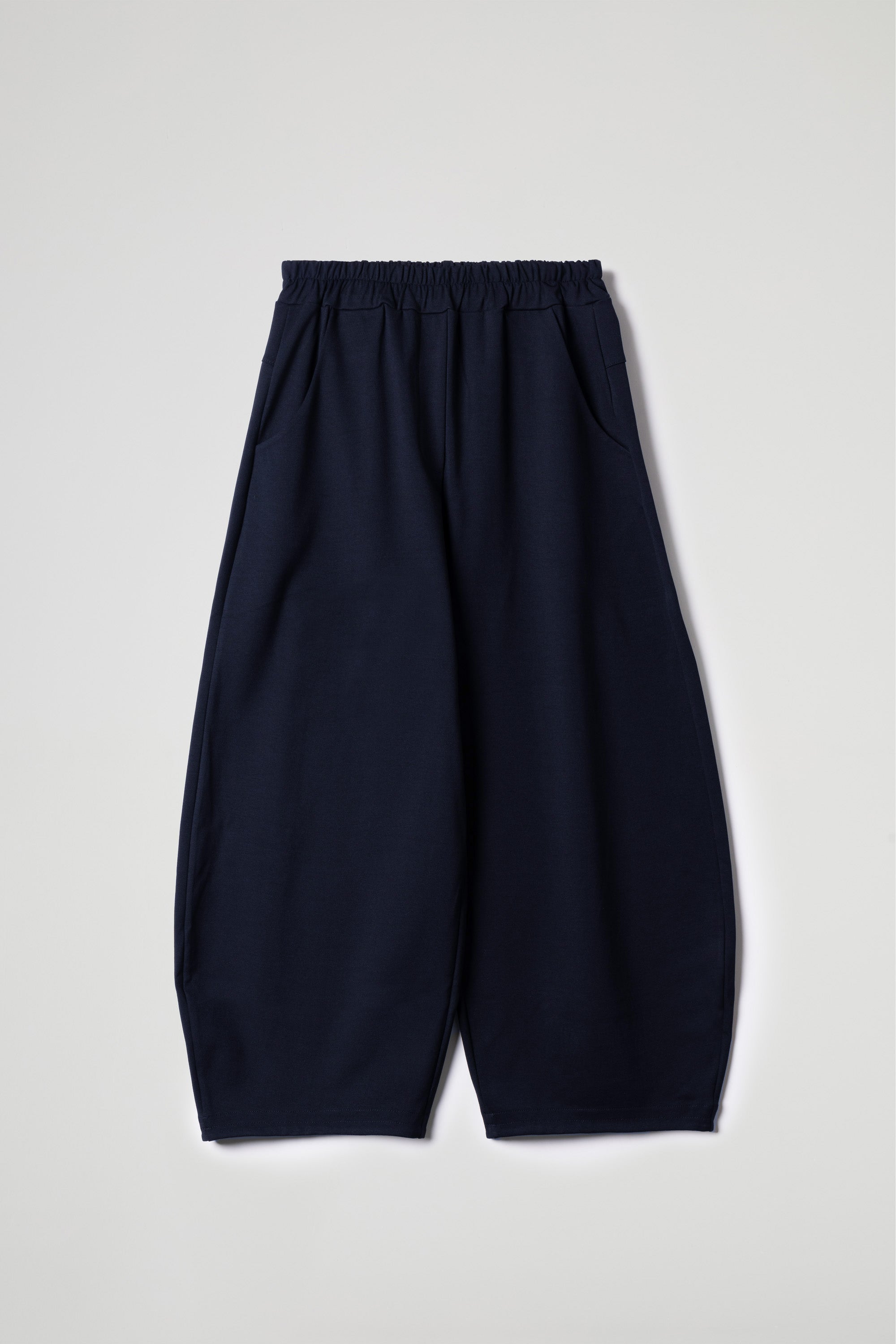 Pantalone bagghy in tessuto punto milano di viscosa, tasche all'americana elastico e coulisse in vita.