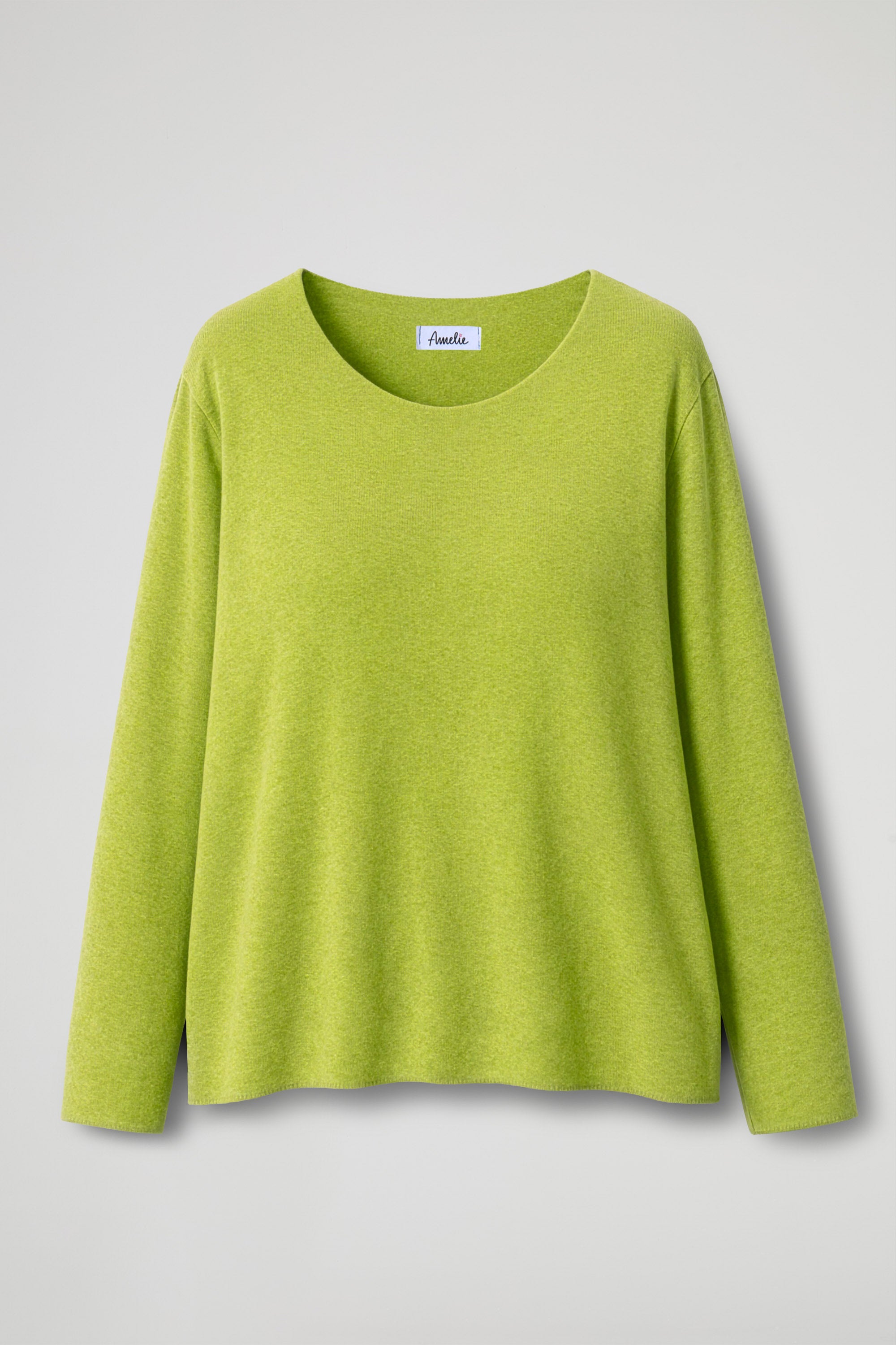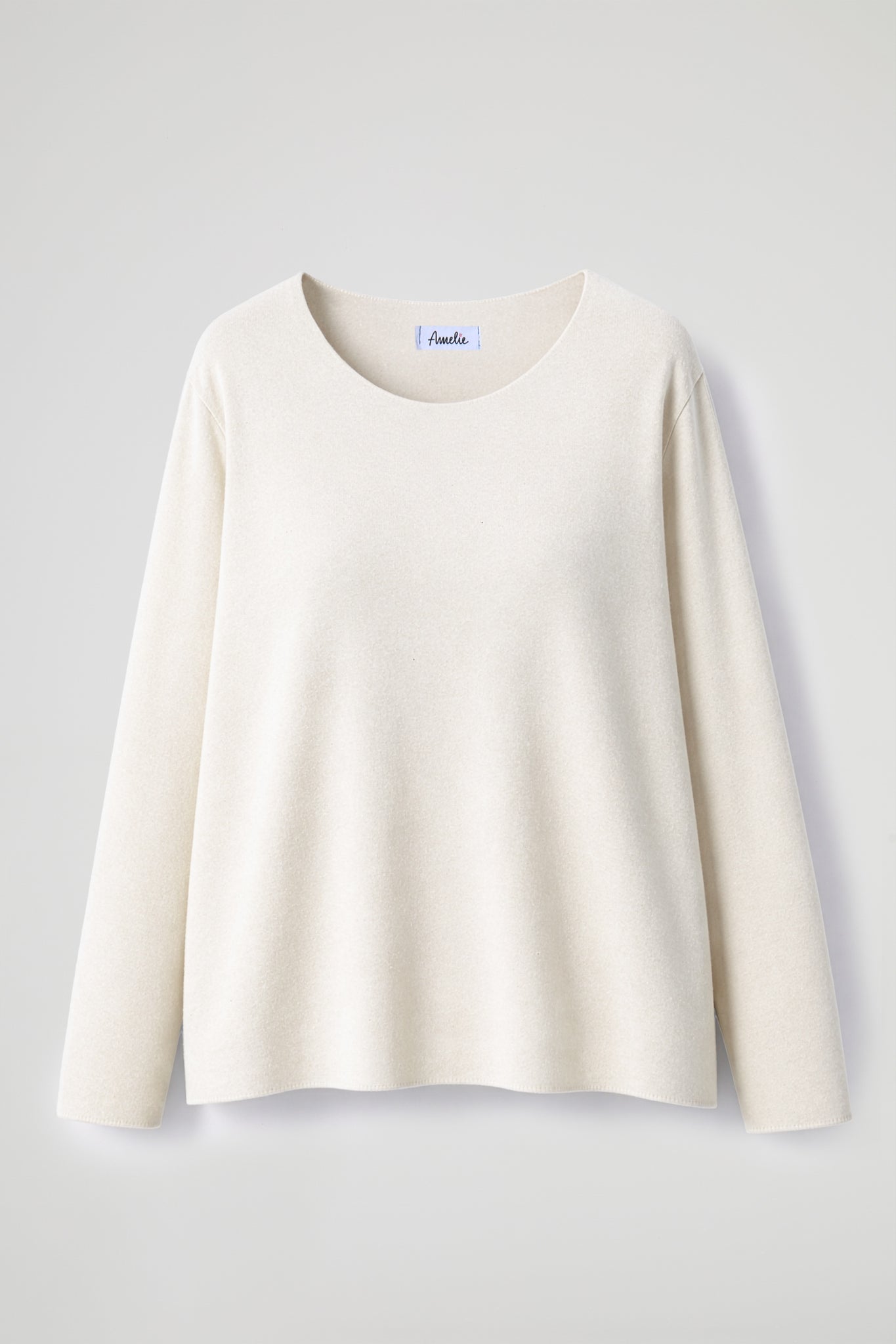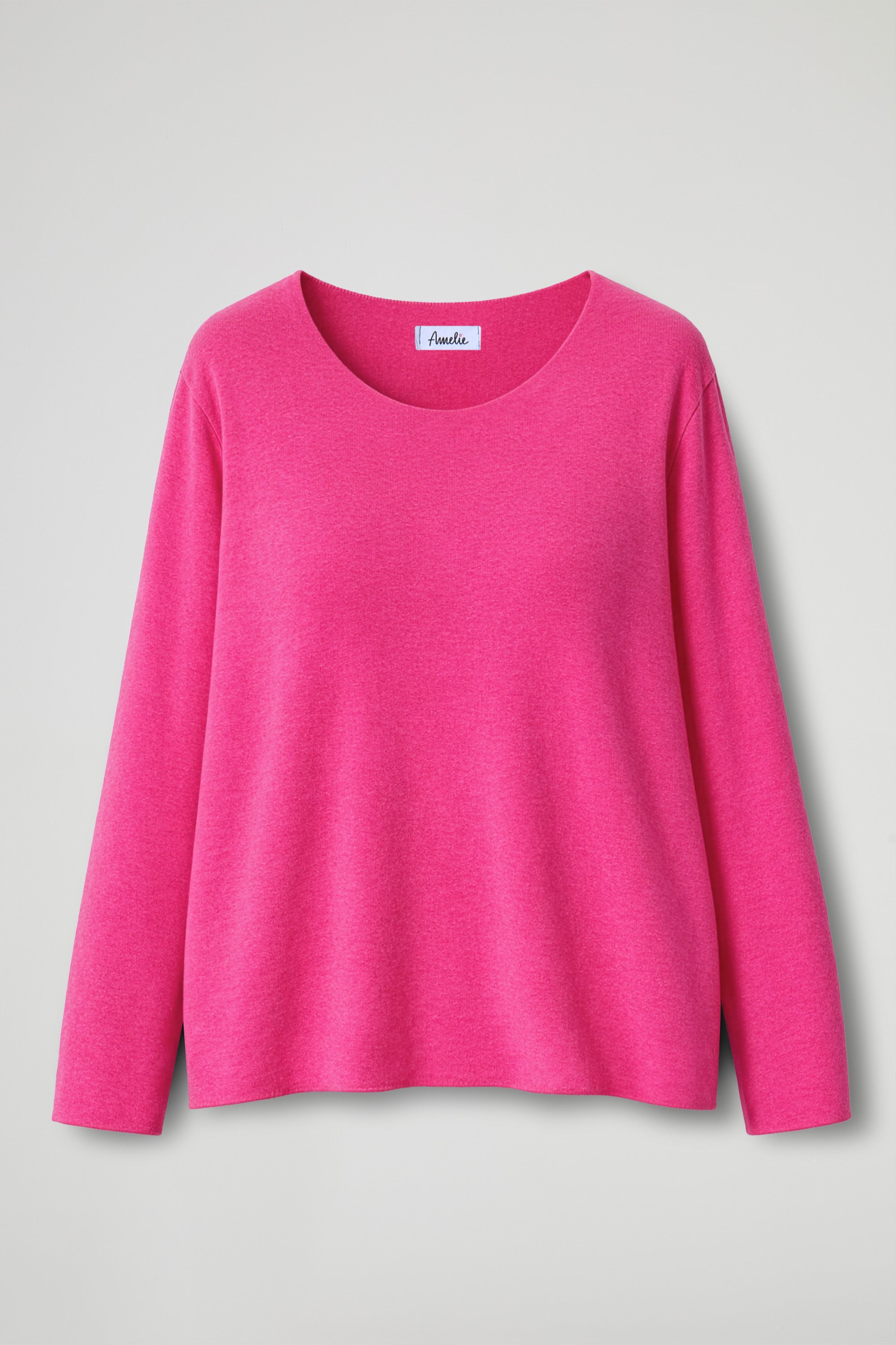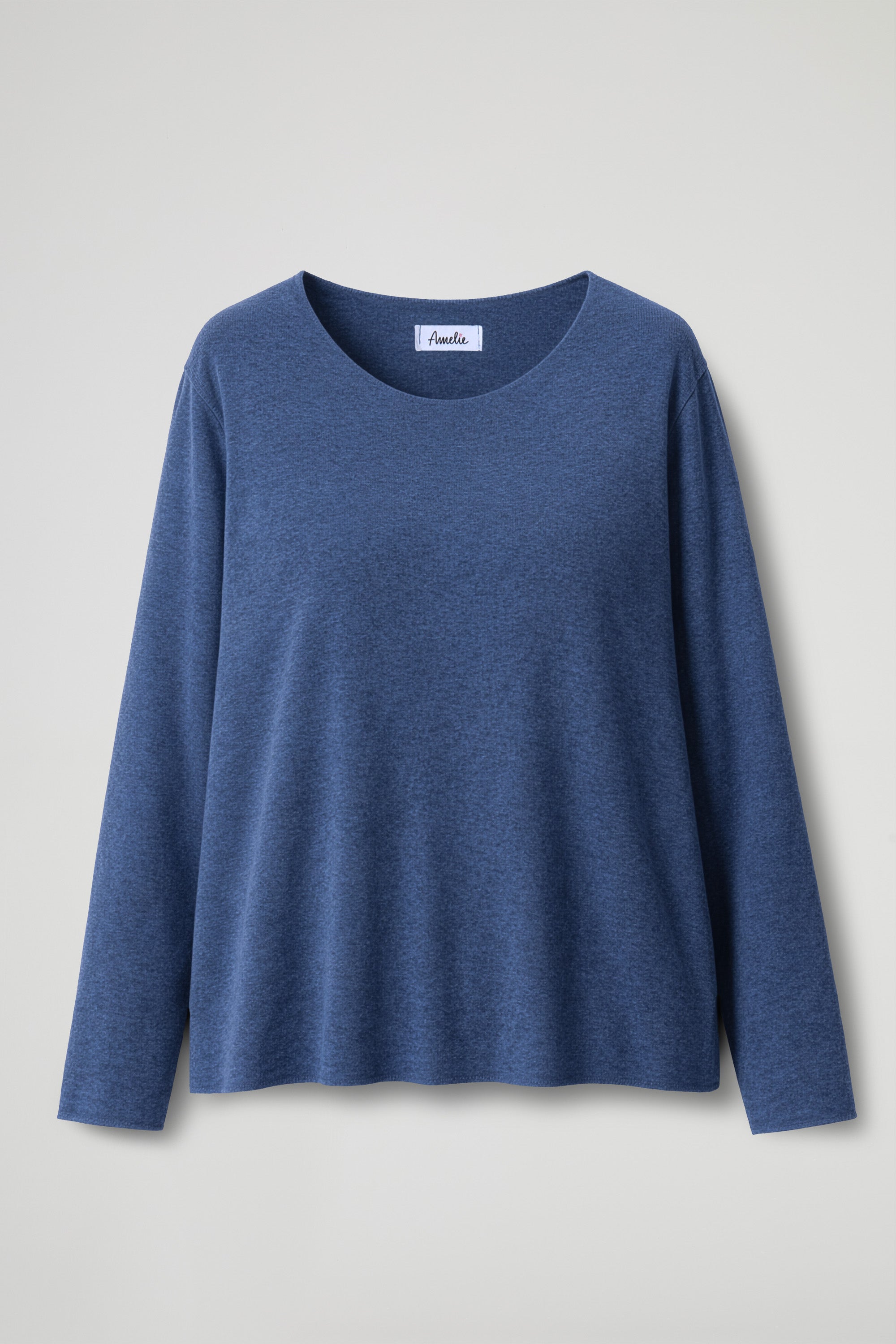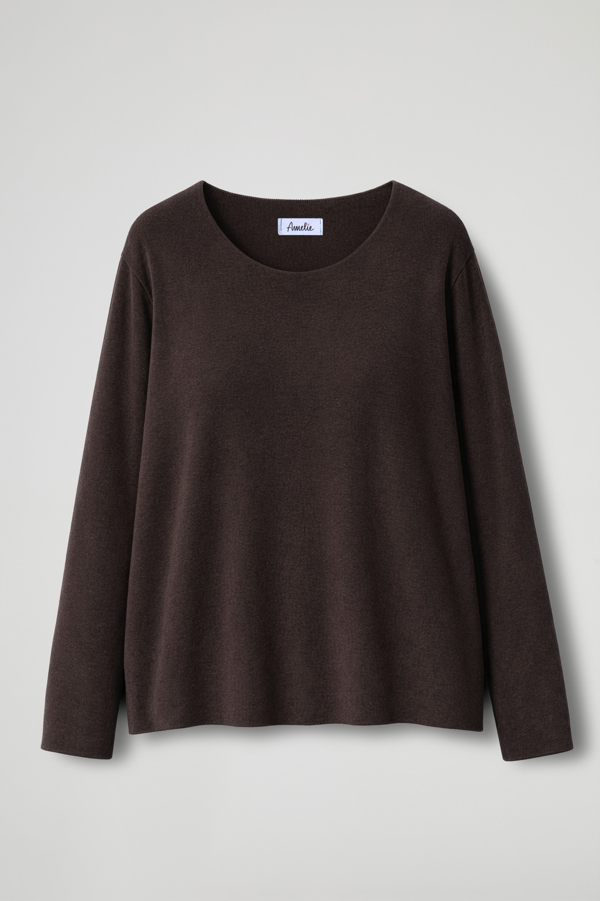 Maglia in tessuto di viscosa, collo ampio , spalle leggermente scese manica lunga, taglio leggermente stondato sul fondo. Linea morbida