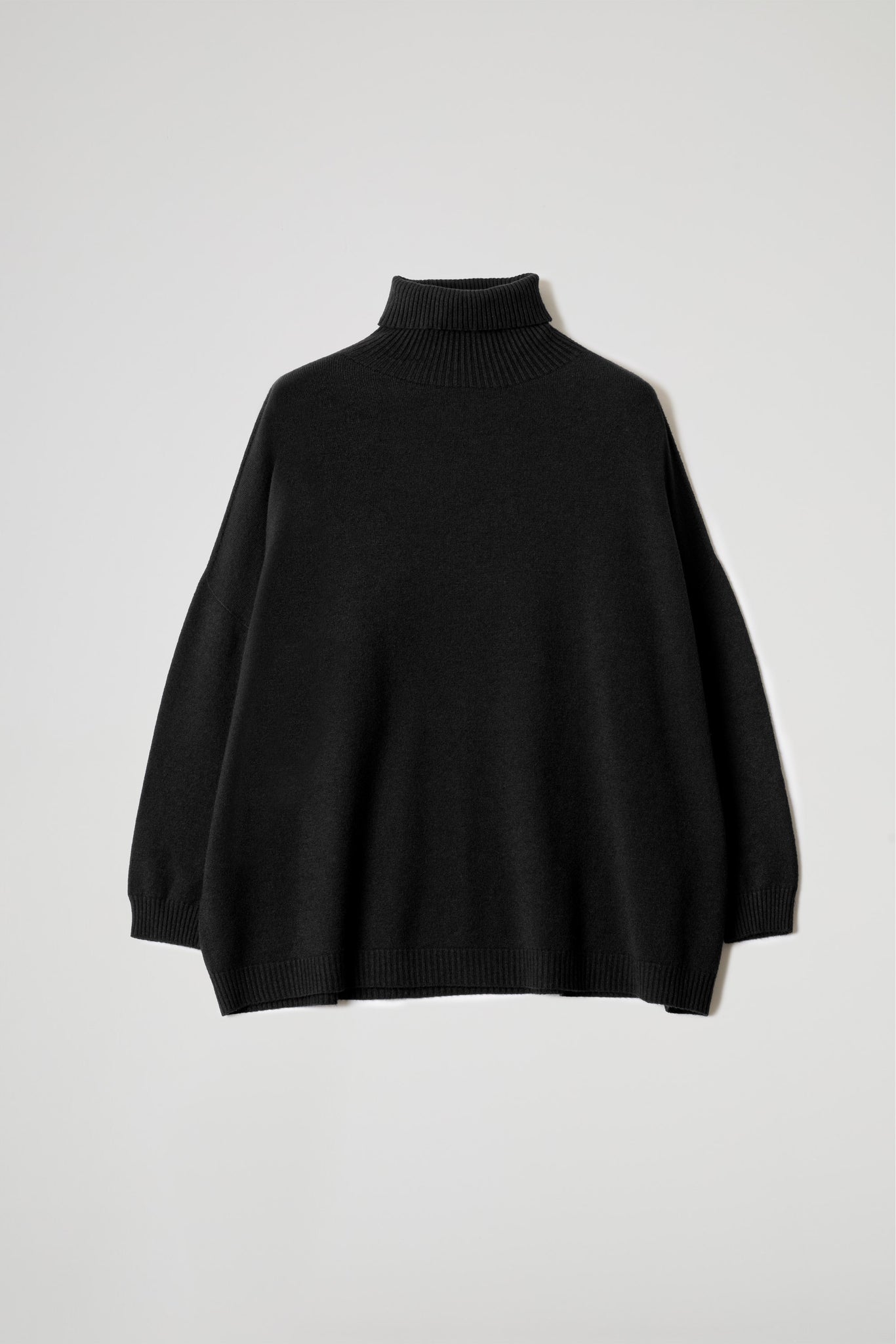 Maglia Over in morbida maglina di viscosa, eleganza essenziale e comfort assoluto si incontrano in questo dolcevita a collo alto, Il suo taglio morbido e la lavorazione pulita lo rendono un must-have trasversale: dalla quotidianità urbana al look più ricercato.
