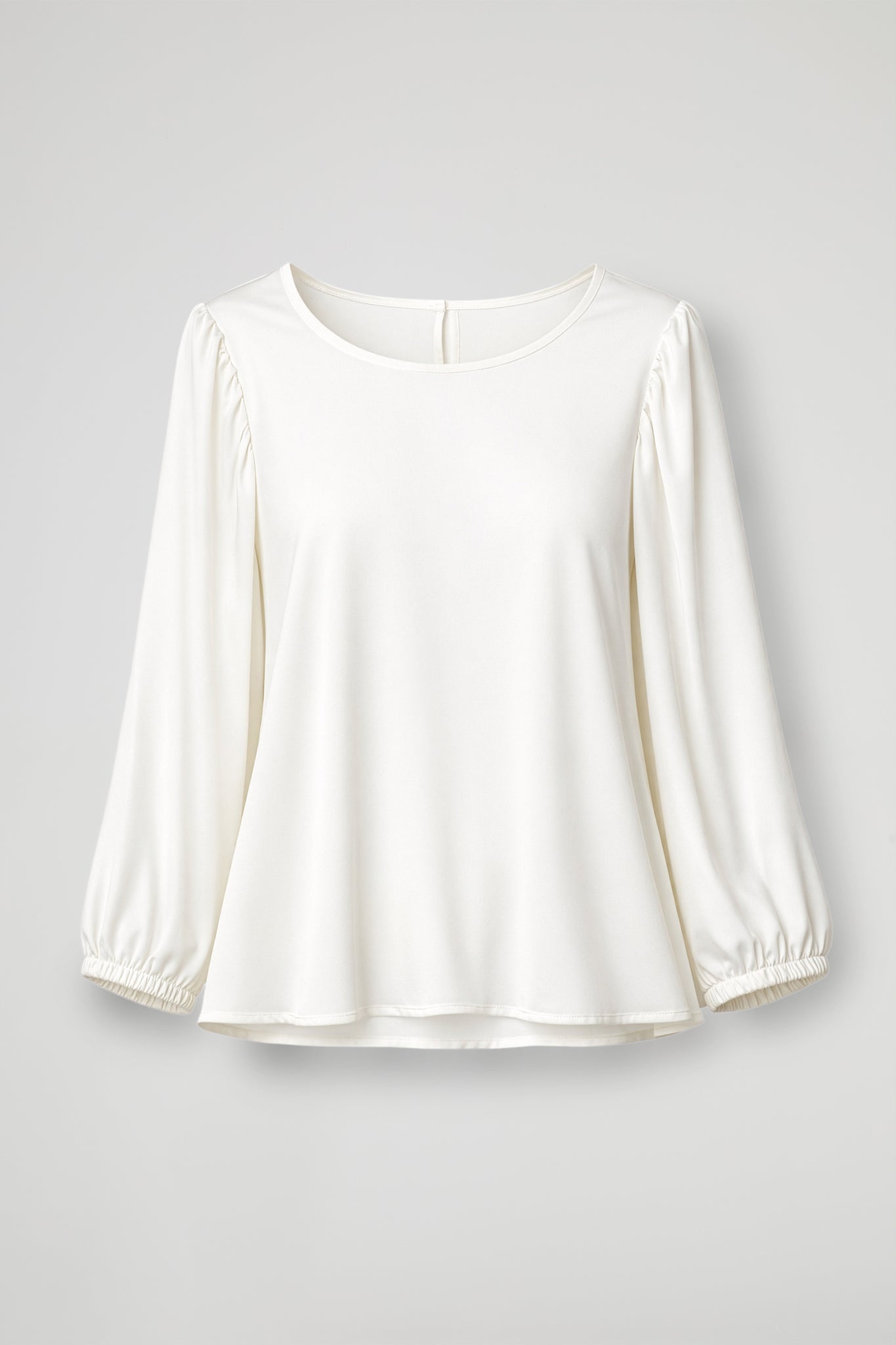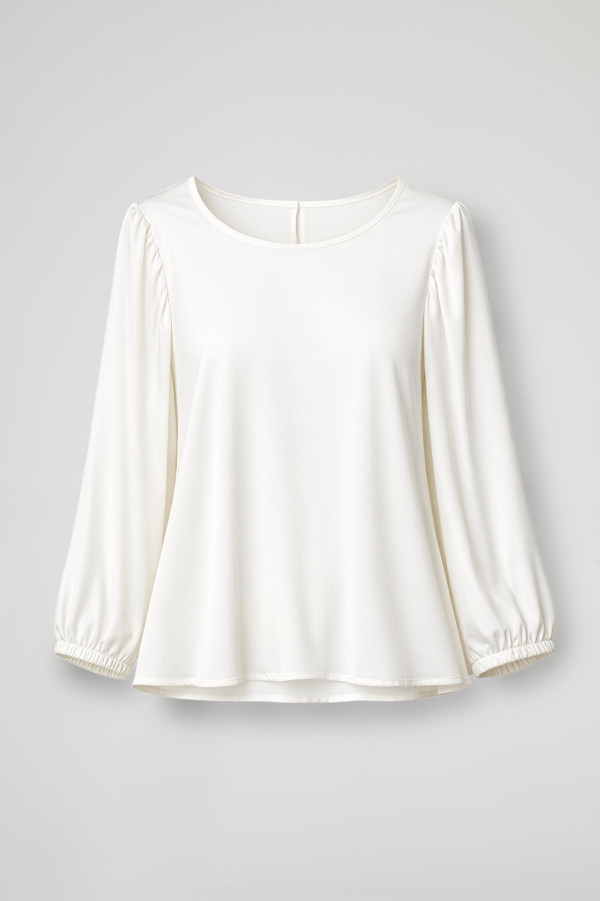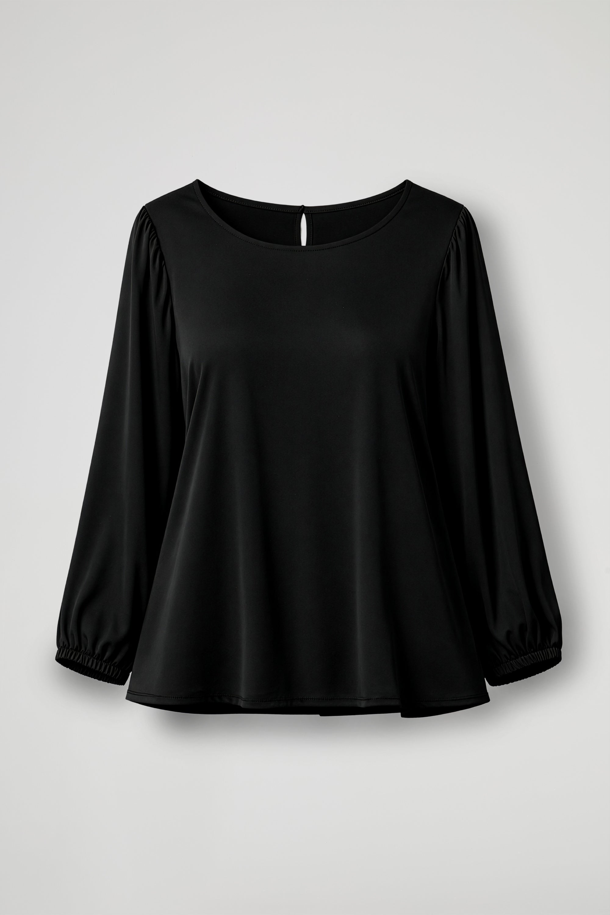 STRETCH VISCOSE AND ECOVERO SATIN BLOUSE, ROUND NECKLINE, LONG SLEEVES WITH ELASTICATED CUFFS, SLEEVES WITH LIGHT RUFFLES, SIDE SLITS. A-LINE LINE. COMFORT FIT WITH A PYJAMA EFFECT.