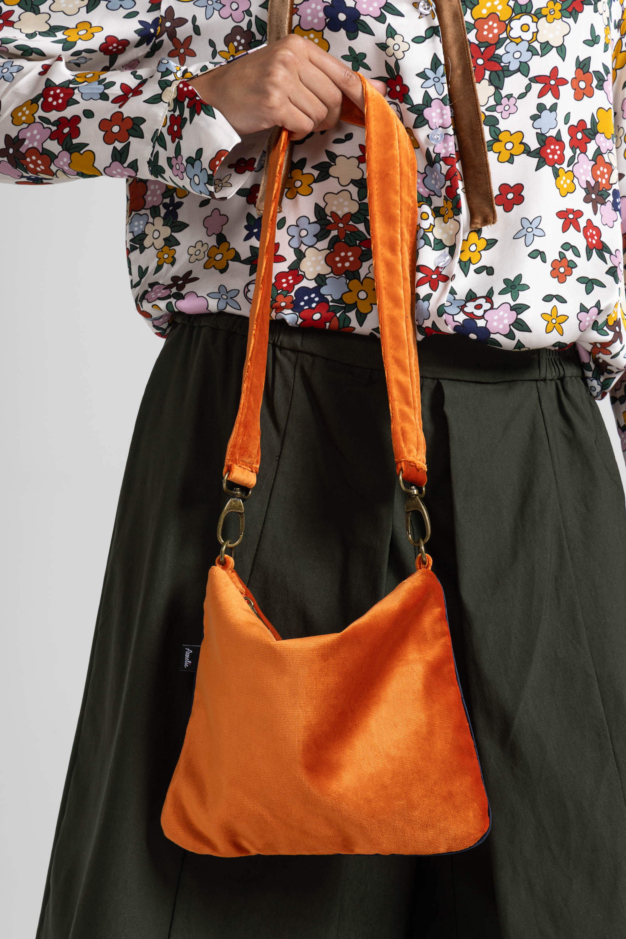 Eleganza e versatilità si incontrano in questa esclusiva borsa a spalla firmata Amélie. Realizzata in pregiato velluto multicolore, presenta una silhouette morbida e geometrica che unisce stile e praticità. Le sfumature armoniose e la banda laterale a contrasto conferiscono alla borsa un carattere distintivo, perfetto per chi ama accessori originali e raffinati.