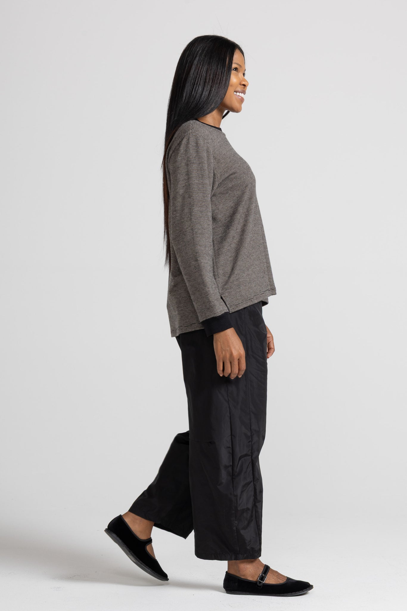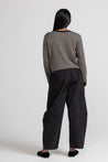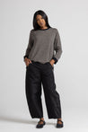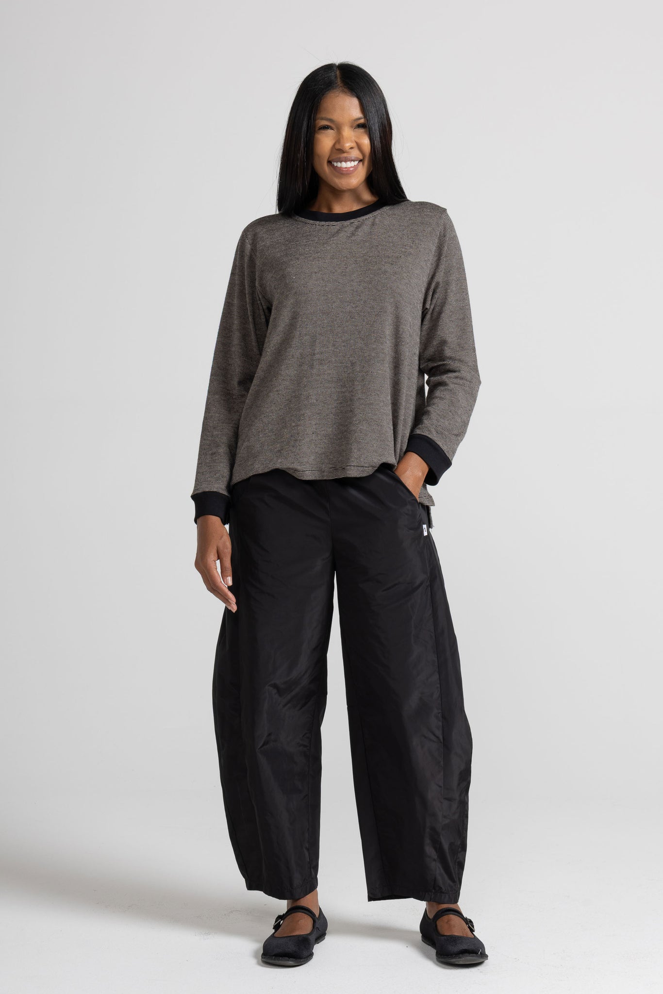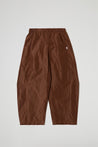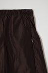 BARREL TROUSERS IN NACRE-EFFECT TAFFETA FABRIC, ELASTIC WAIST, CUT ON THE LEG, SQUARE POCKETS, BAGGY LINE
