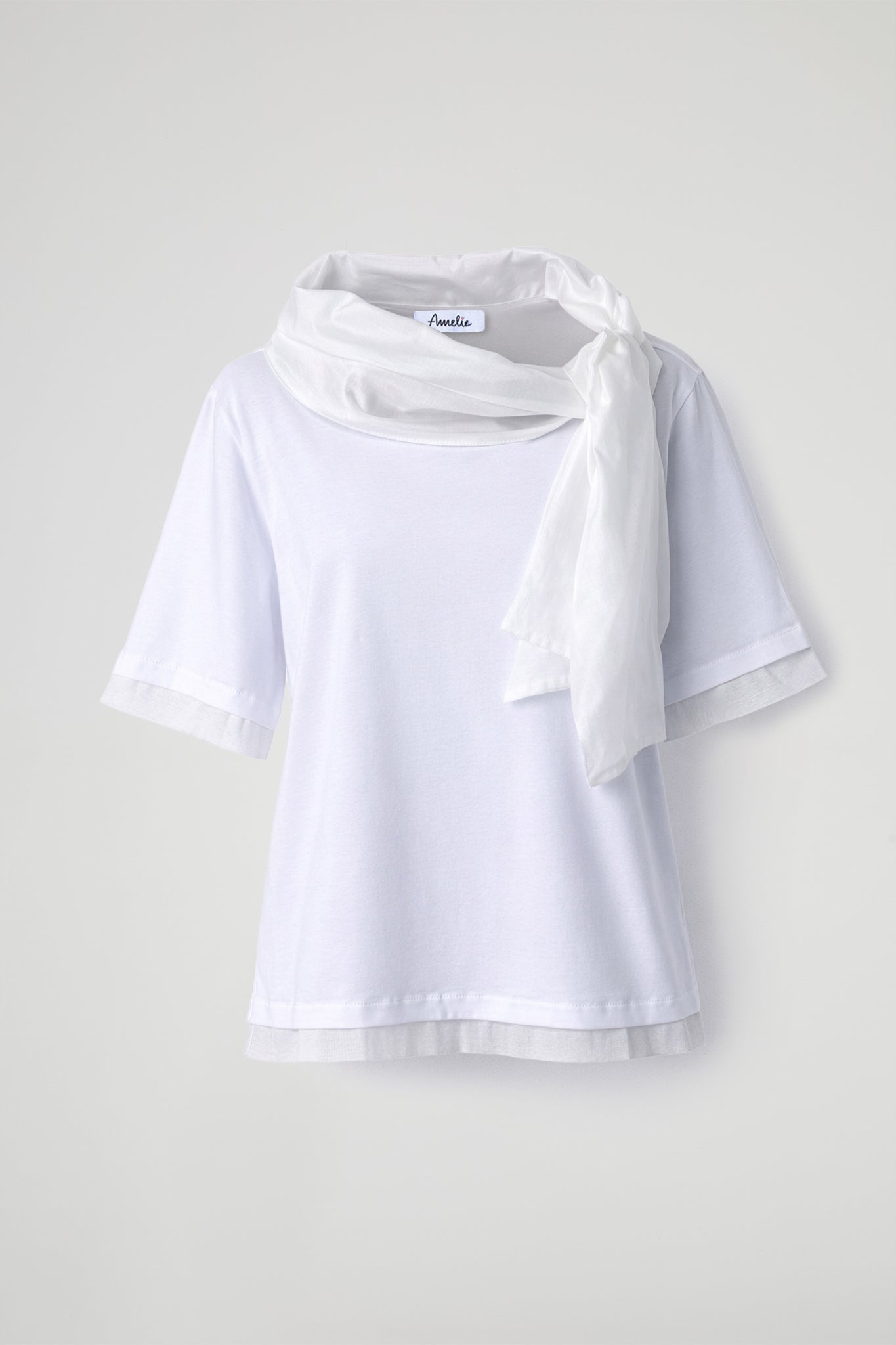 T-SHIRT WITH SCARF COLLAR AND BOW