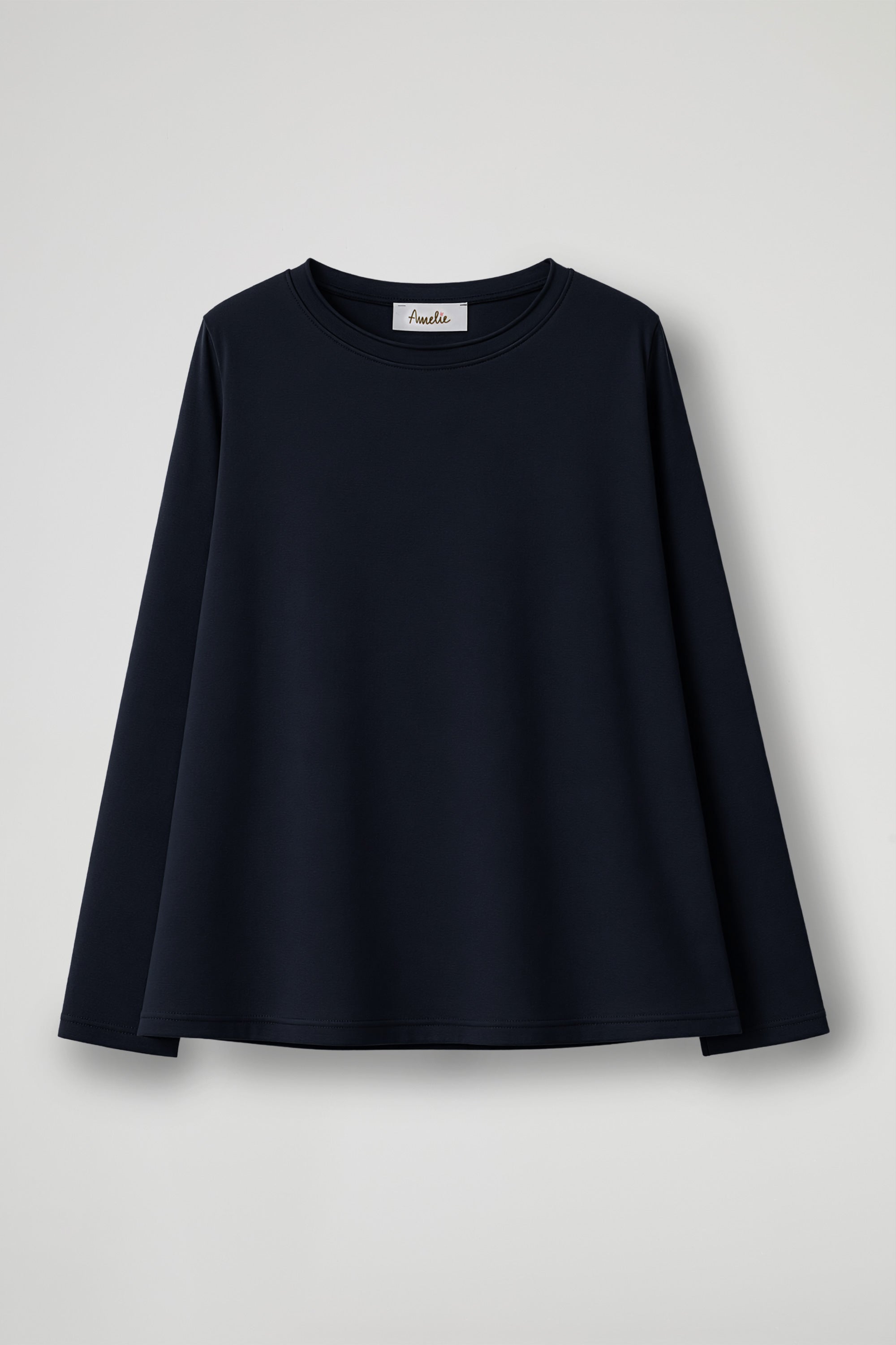 A long-sleeved sweater with a minimal, contemporary appeal, a versatile piece made from soft cotton fabric that hugs the figure with a comfortable fit that flatters without constricting; the essential design is enhanced by the finished round neckline and soft lines that make it extremely versatile.