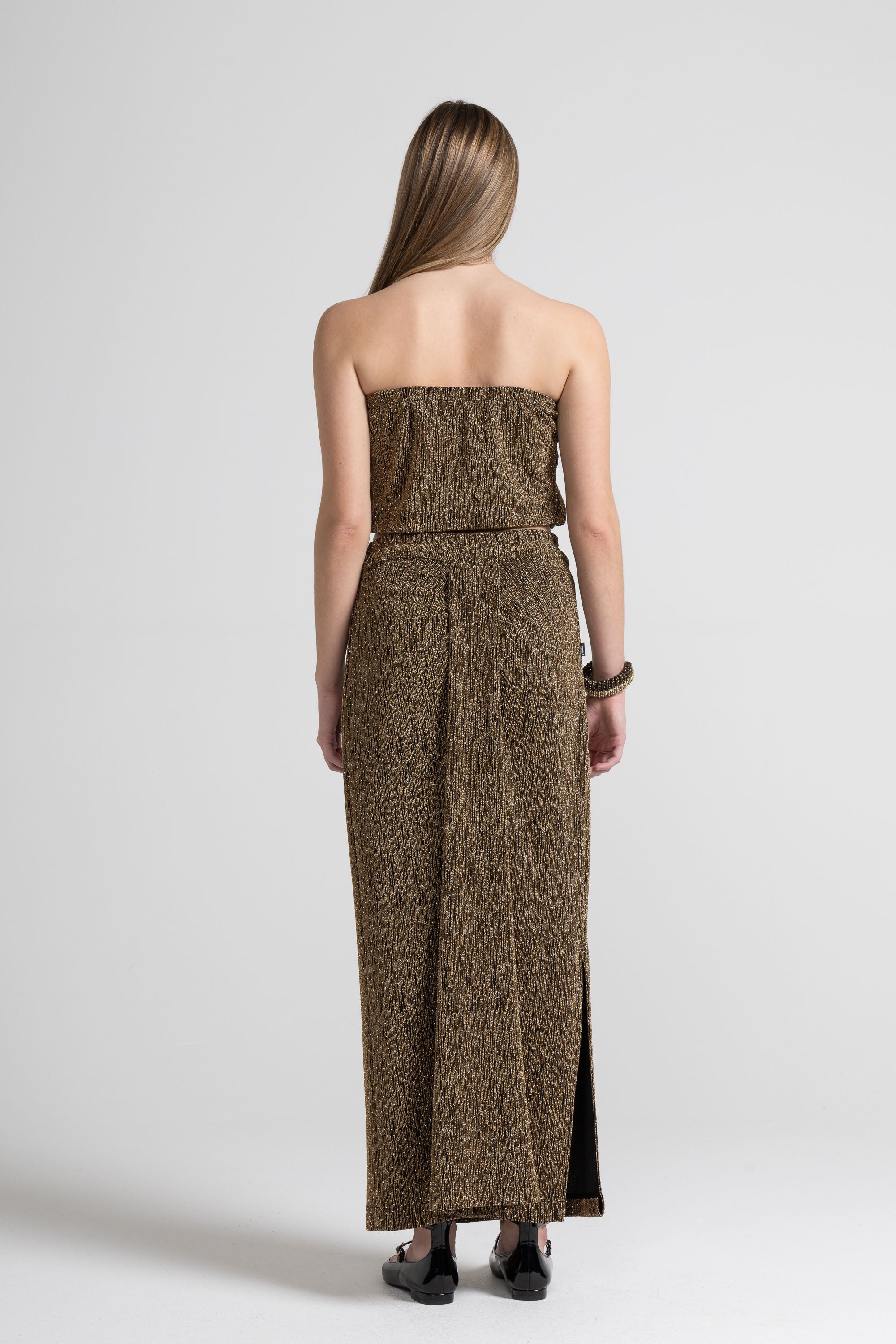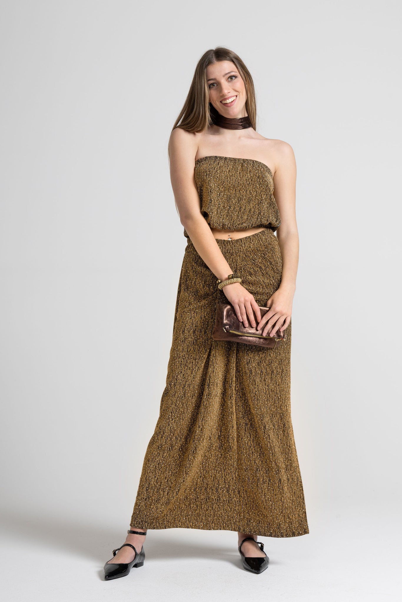 Top corto luminoso e sofisticato, pensato per chi ama distinguersi con un tocco di eleganza moderna; Il design minimal ma raffinato valorizza la silhouette con semplicità, mentre il taglio corto e la linea morbida lo rendono perfetto per creare outfit da sera o coordinati eleganti o per dare un tocco glam anche ai look più semplici.