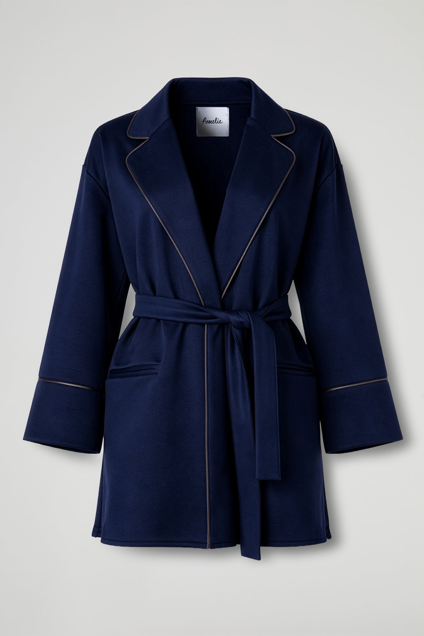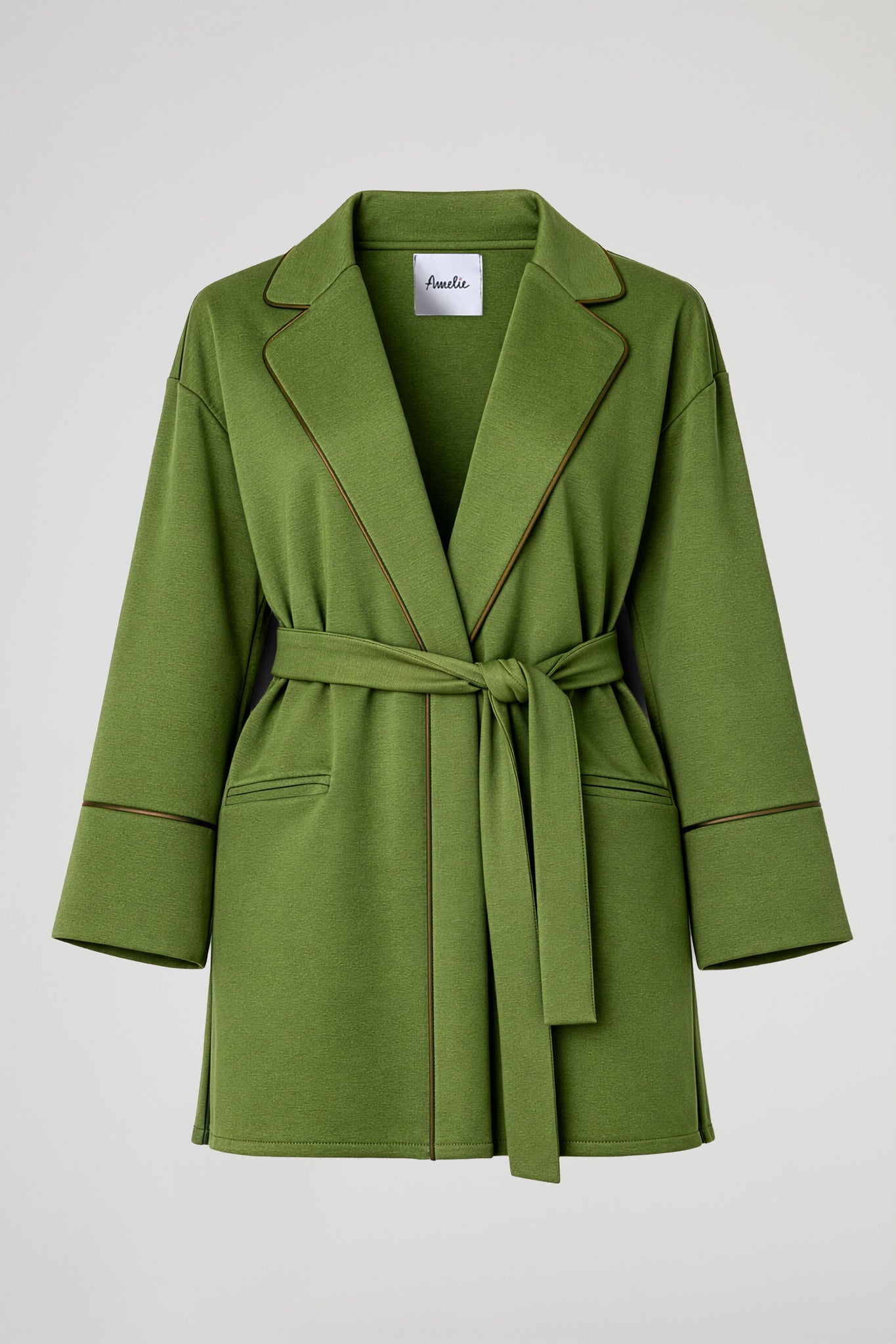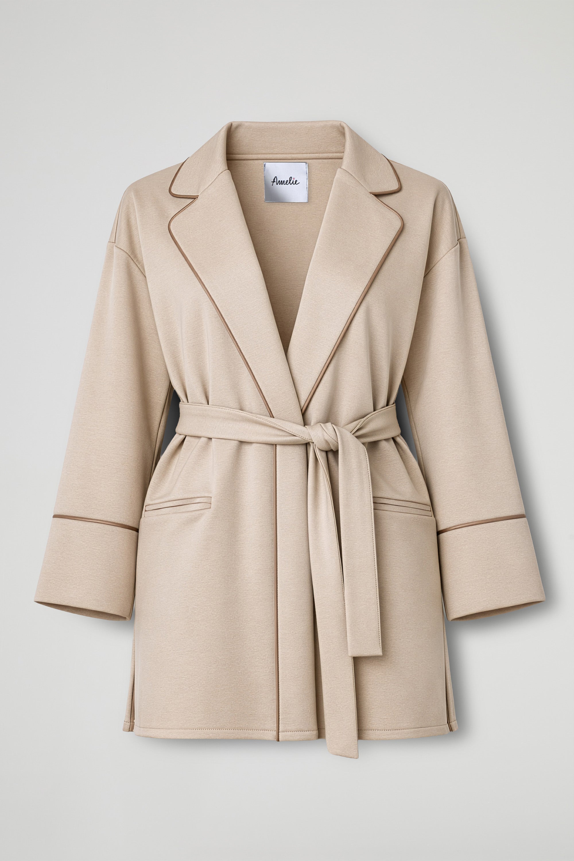 Giacca dal taglio contemporaneo, perfetta per dare subito carattere anche ai look più semplici. La linea è morbida e leggermente over, con rever ampio e un finish super curato grazie alle profilature a contrasto che definiscono i bordi e le maniche. Da indossare aperta oppure da stringere in vita con la fusciacca coordinata per valorizzare la silhouette.