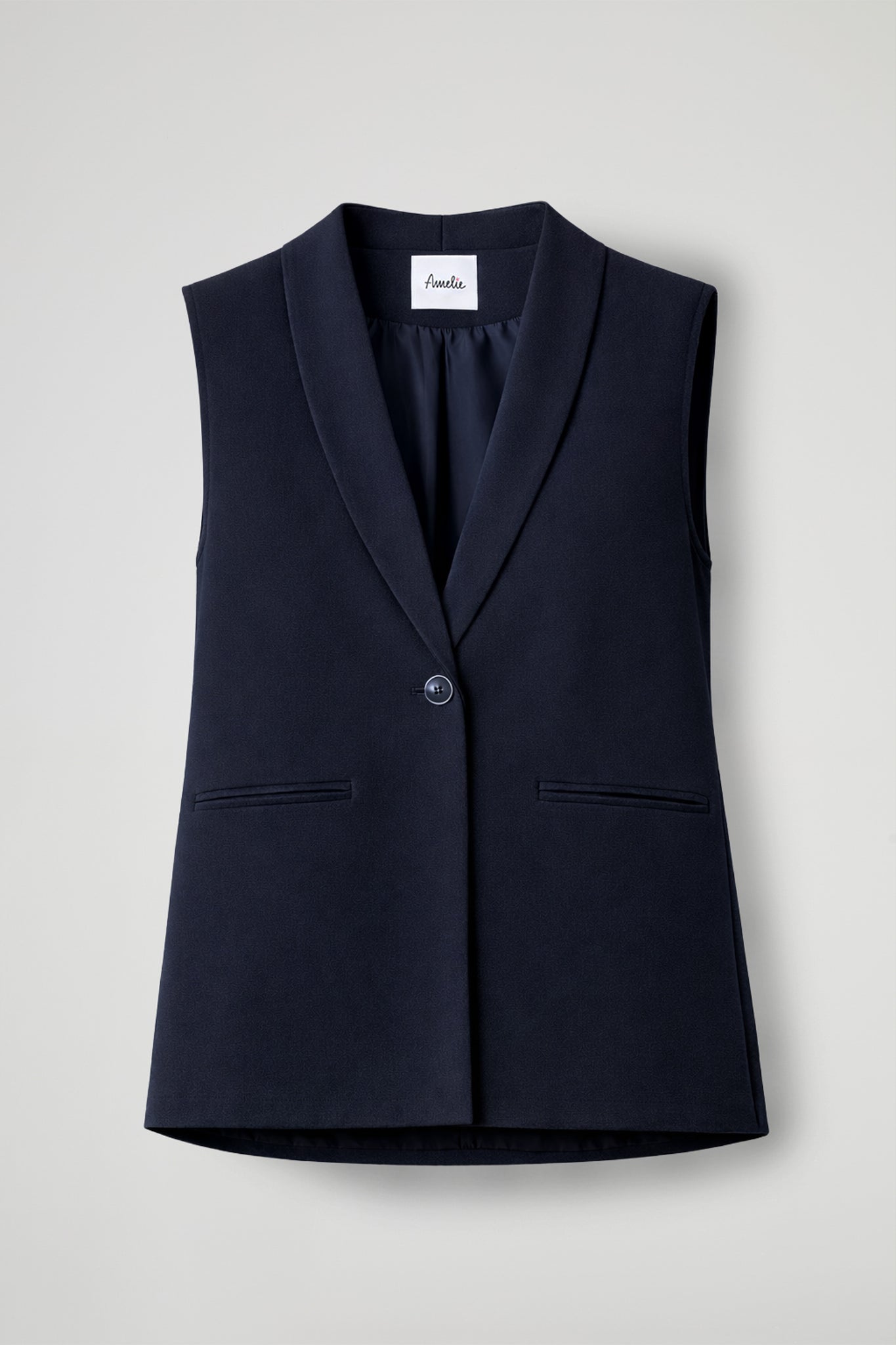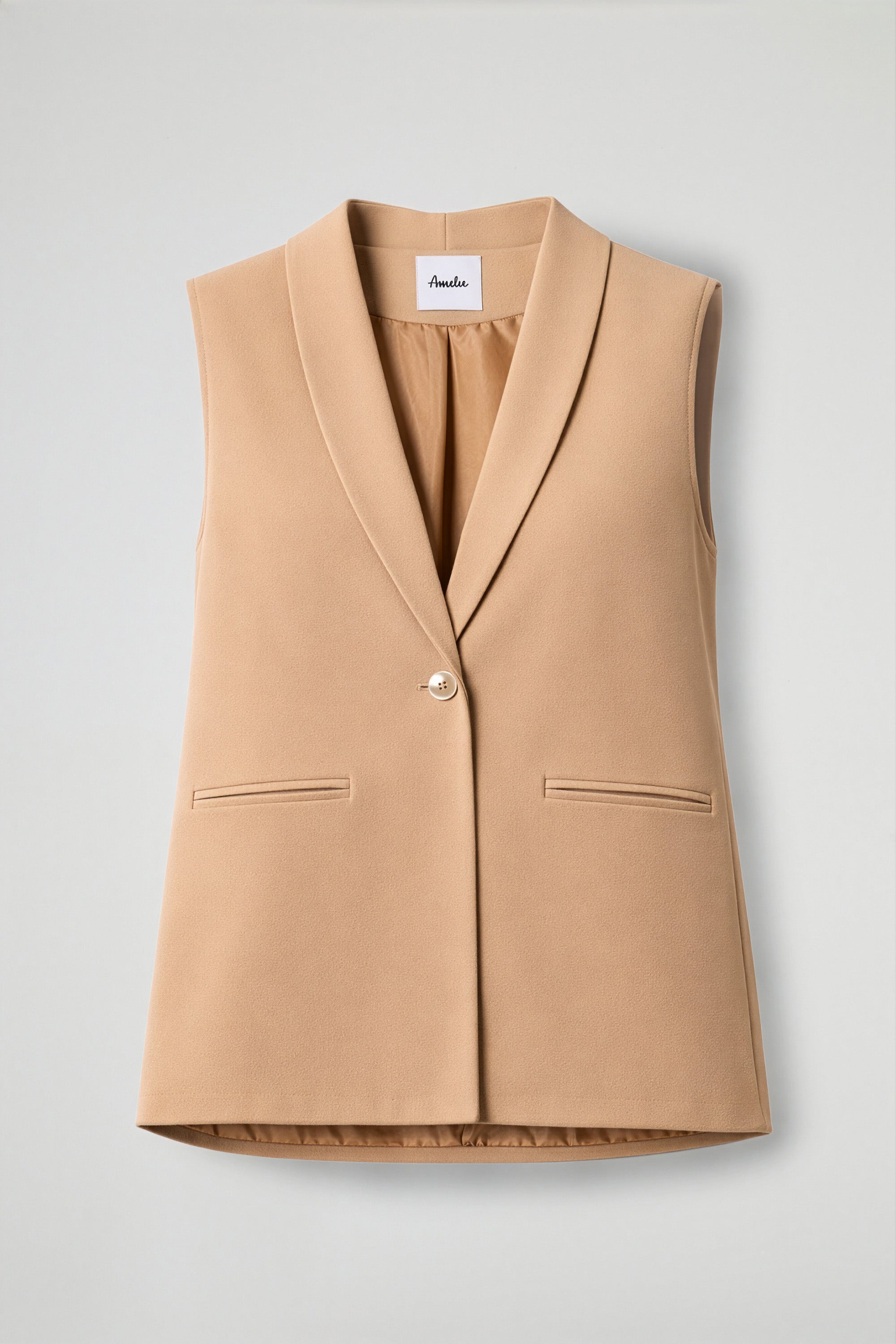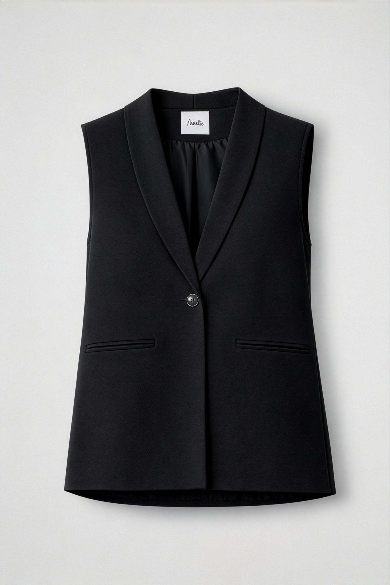 Gilet sartoriale realizzato in tessuto fluido; Un capo iconico dal fascino contemporaneo caratterizzato da una linea pulita e femminile, perfetto da indossare su camicie, bluse o maglie leggere, è il capo ideale per creare outfit eleganti, minimal e di tendenza sia per il giorno che per la sera.