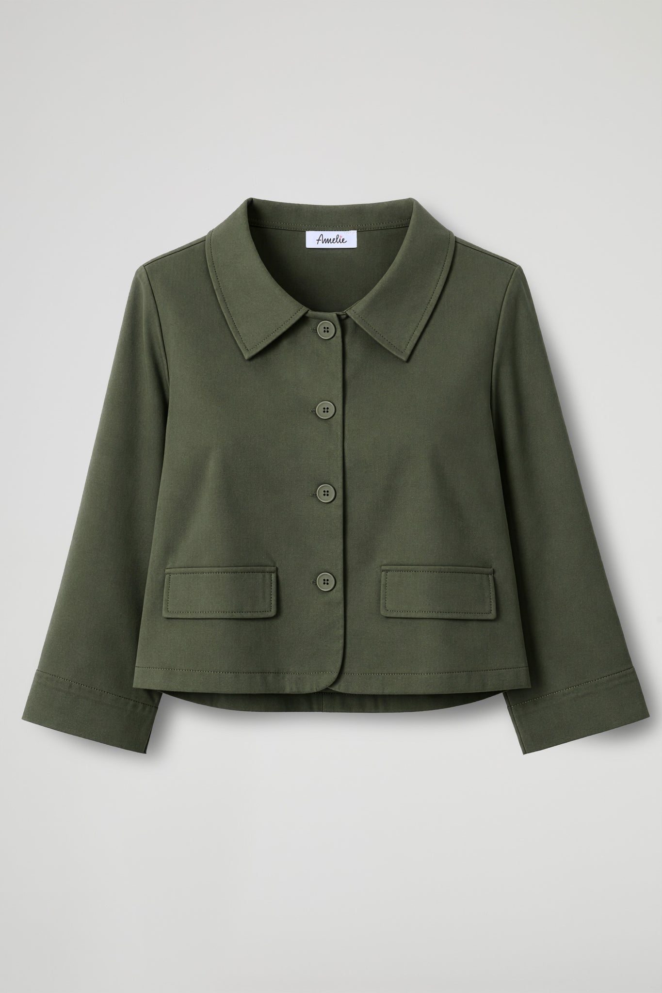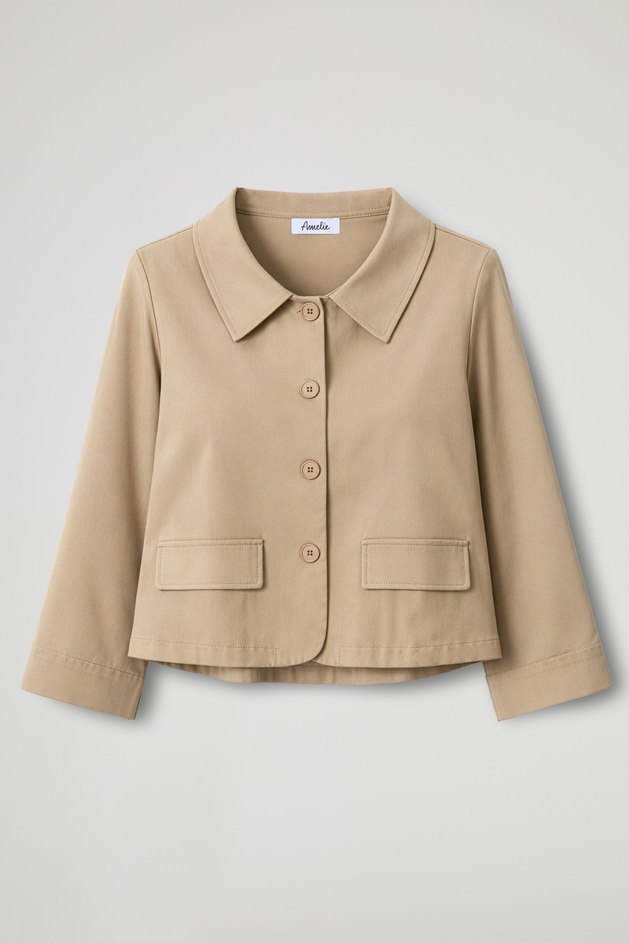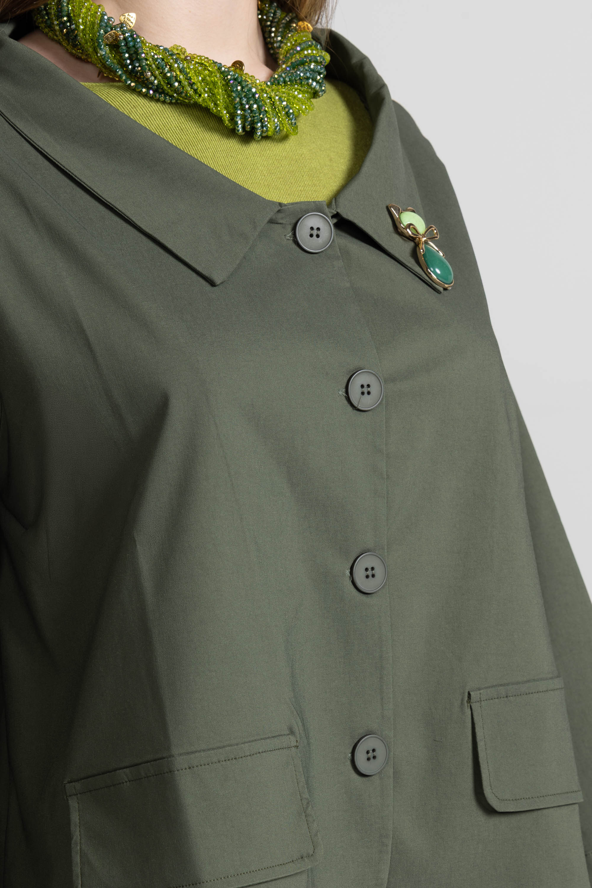 Giacca corta dal taglio boxy e pulito, pensata per dare struttura al look senza appesantire. Il colletto a camicia e l’abbottonatura frontale la rendono essenziale ma super versatile: perfetta su pantaloni a vita alta, denim o abiti, dal giorno alla sera.