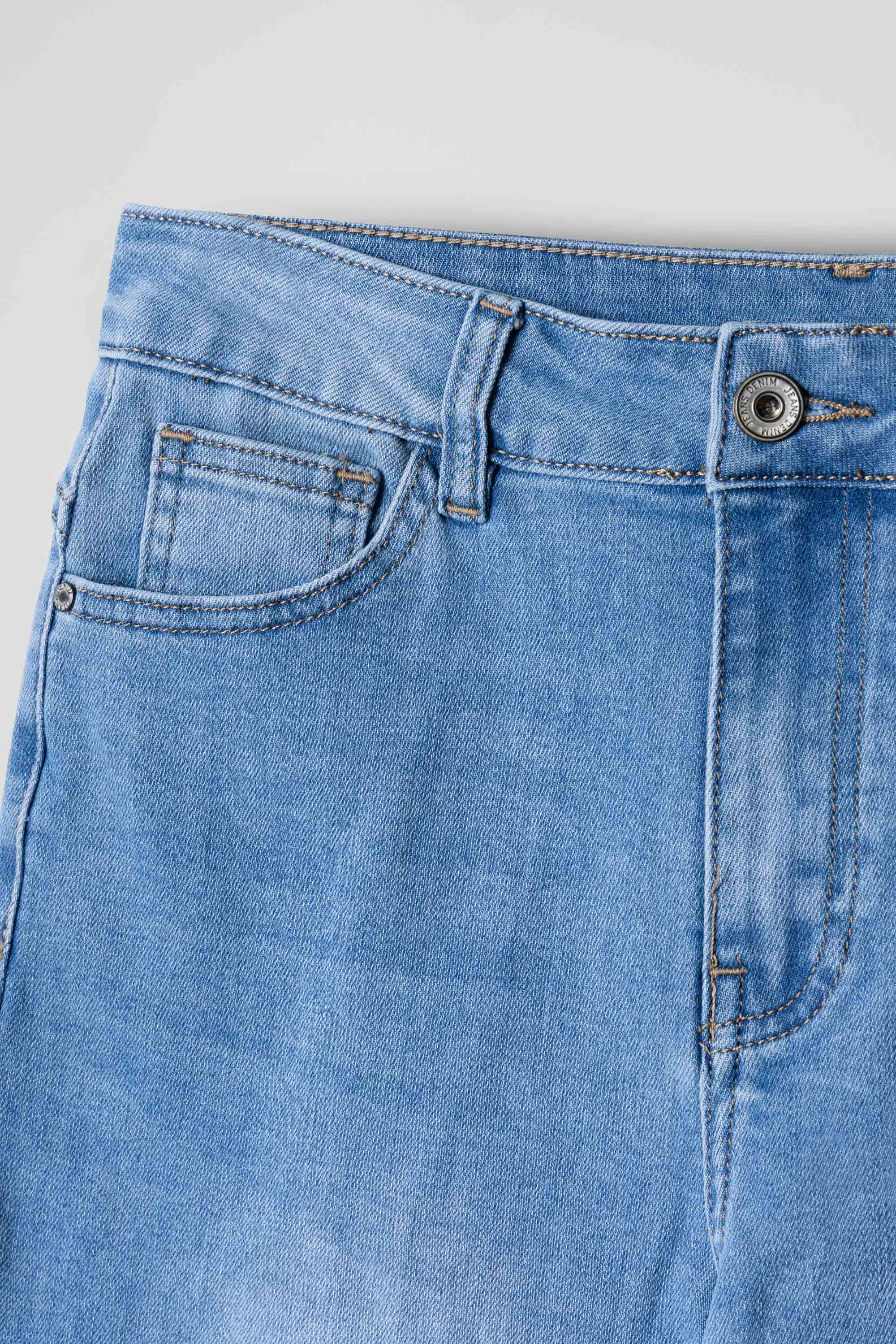 Il lavaggio leggermente sfumato dona al capo un look autentico e casual, mentre il classico design a cinque tasche, con chiusura con bottone e zip e passanti per cintura, richiama lo stile intramontabile del denim.