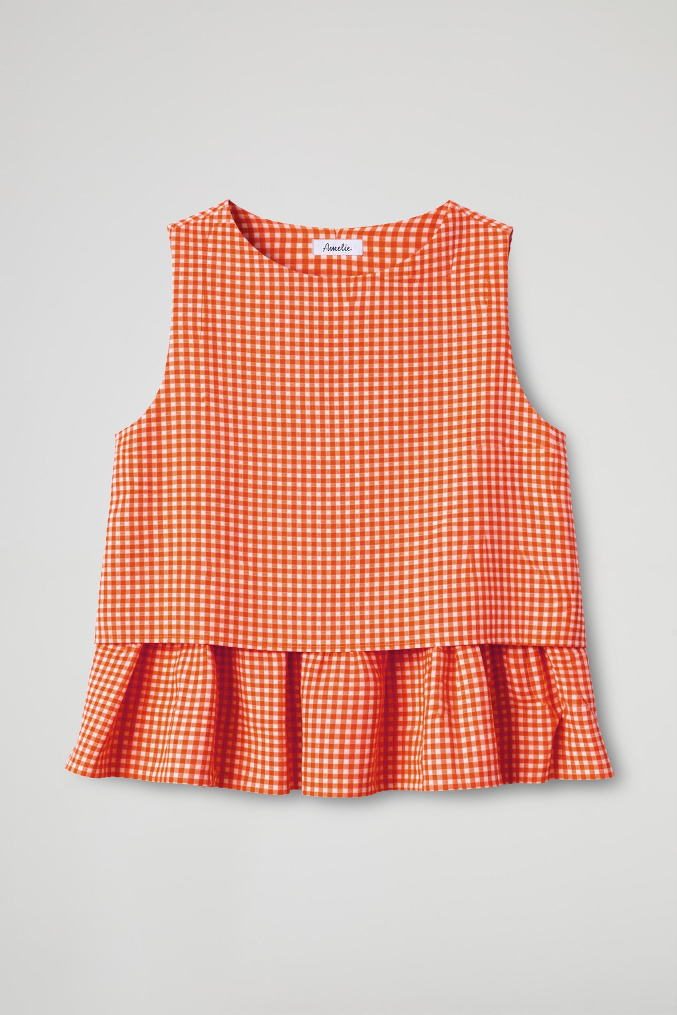 Top smanicato realizzato in leggero cotone a quadretti Vichy; la fascia arricciata sul fondo rende il capo morbido e femminile, donando movimento e un tocco di freschezza al design, si distingue per il suo stile leggero e versatile, perfetto da abbinare sia a pantaloni che a gonne per un look casual ma curato.