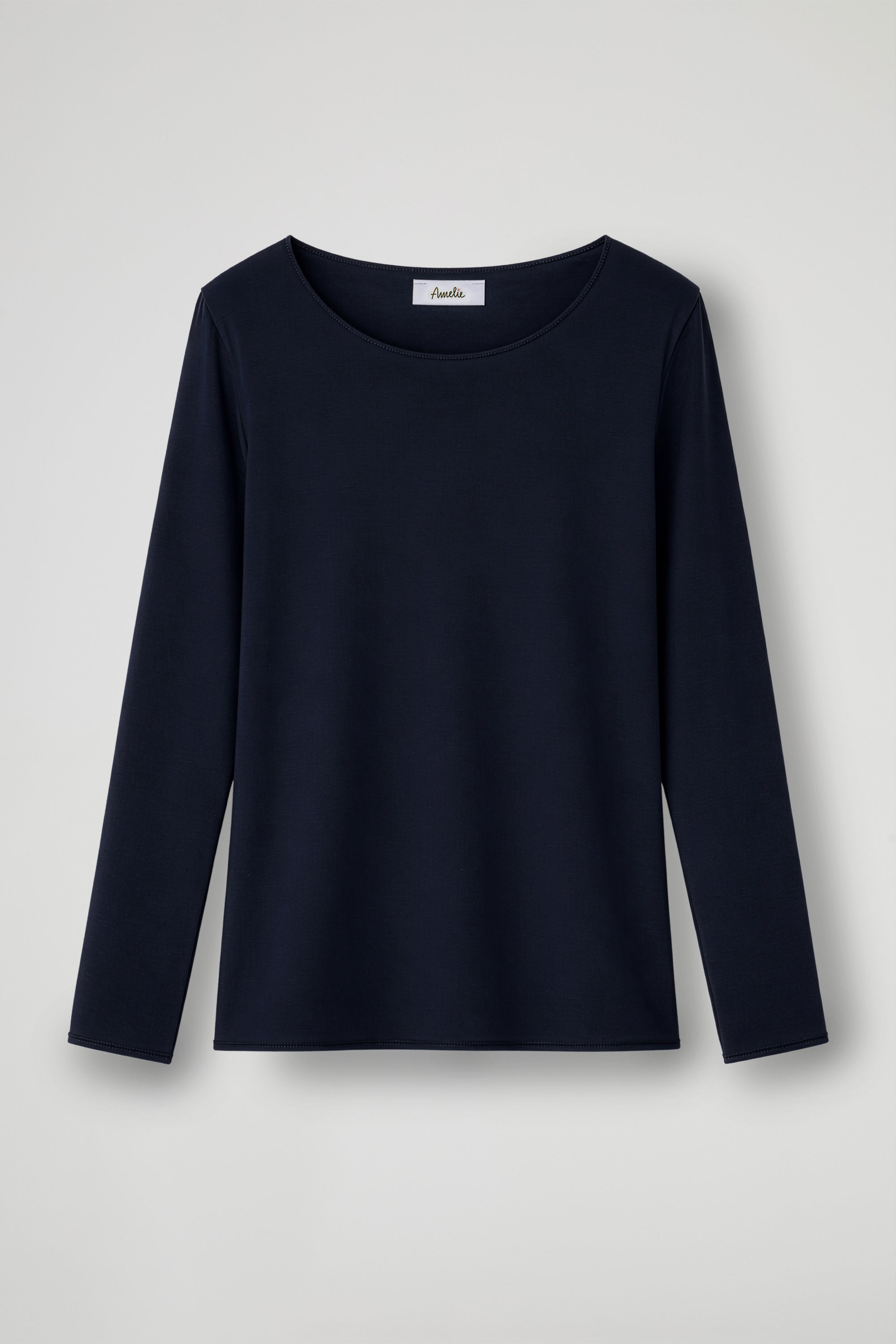 Maglia a maniche lunghe dal design essenziale ed elegante, realizzata in tessuto morbido e confortevole. Il modello presenta uno scollo ampio e arrotondato che valorizza il décolleté, con una vestibilità fluida che cade delicatamente sul corpo; Ideale da indossare da sola o come base sotto giacche e cardigan.